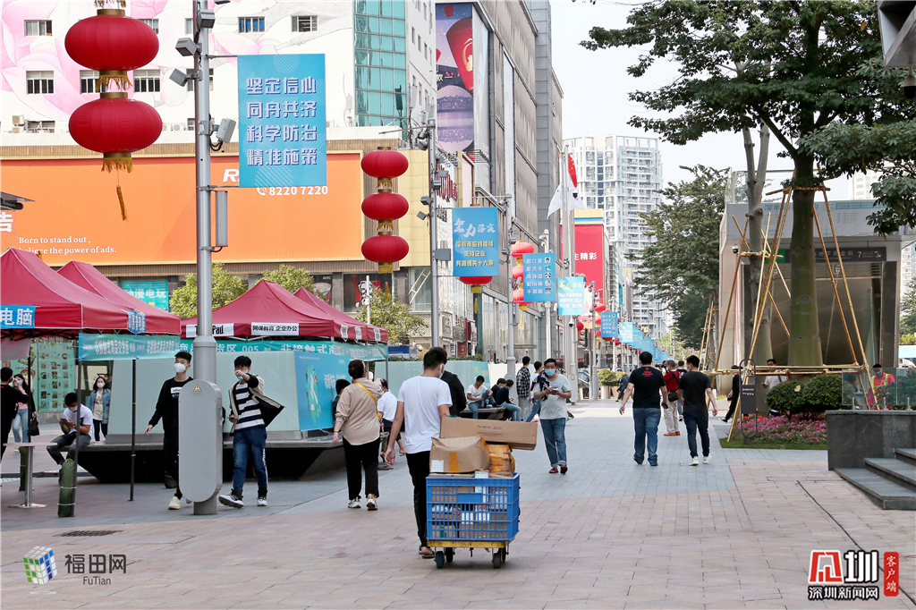 早在2月23日,华强北就率先开启创新式室外帐篷交易模式,在主街设置180顶帐篷,建立起物流收发货区、非接触物品销售区、防疫消毒区、生活供需品领取区等区域,将“一米柜台”搬上主街,实现非