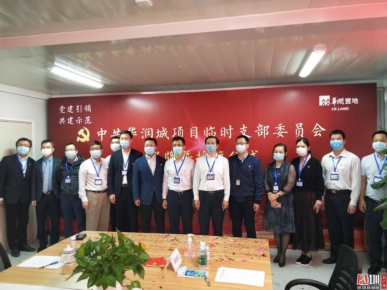 见圳客户端·深圳新闻网讯(记者 郑梓安 通讯员 陈鹏)2020年3月31日上午,经深圳市南山区粤海街道大冲社区委员会批准,中共华润城项目临时支部委员会正式揭牌成立。南山区粤海街道办事处工委书记李业甫,南山区粤海街道办事处工委副书记、人大工委主任袁丽,南山区住建局党组成员、副局长杨利君, 华润置地高级副总裁、华南大区党委书记、董事长孔小凯等人出席揭牌仪式,为临时党支部揭牌和四个党员先锋队授旗。