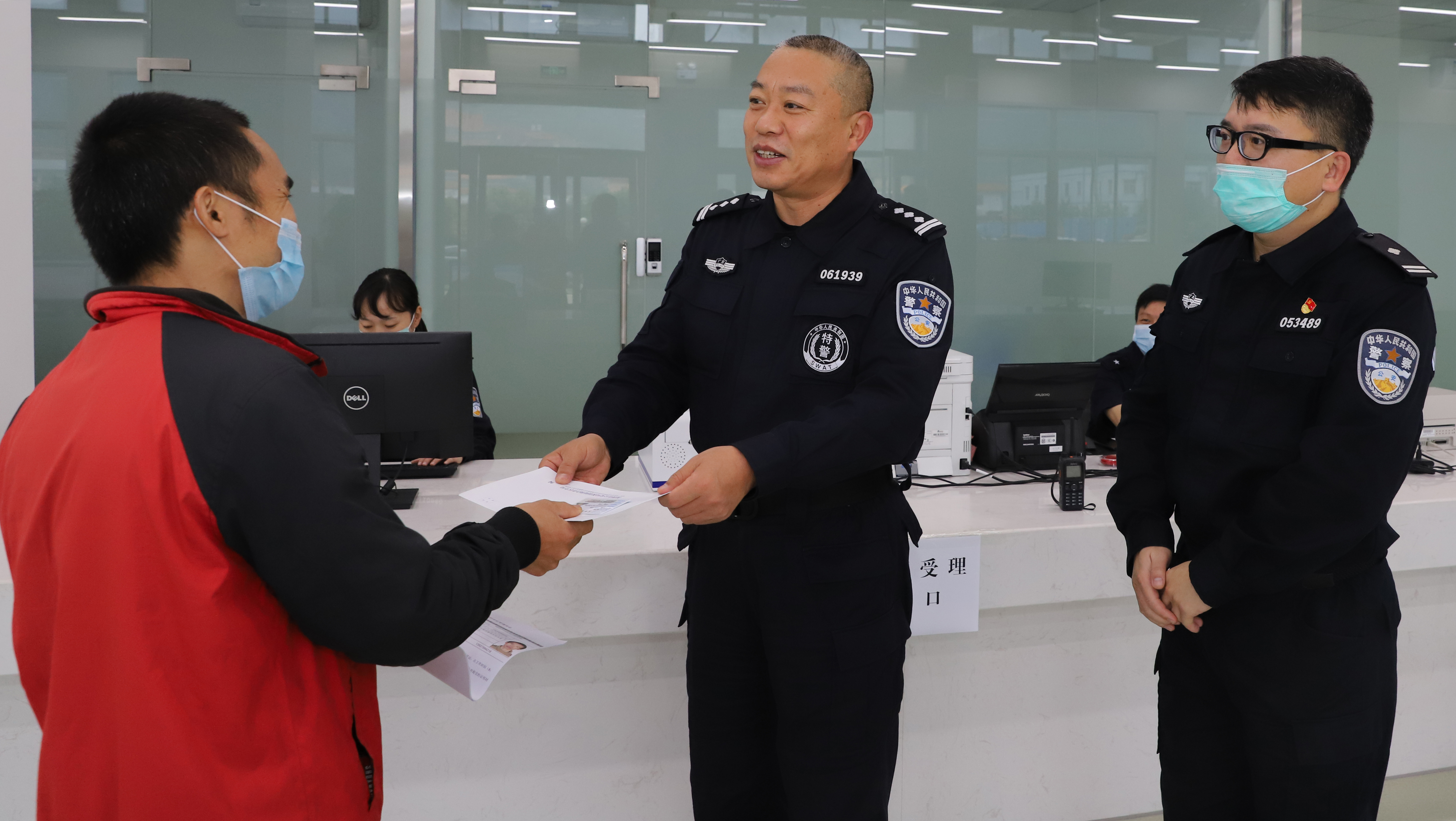 见圳客户端·深圳新闻网2020年4月7日讯(见圳客户端、深圳新闻网记者 兰俊 通讯员 李涵睿 张宪松)2020年4月3日下午,深圳市公安局深汕特别合作区分局(简称“深汕公安分局”)综合服务办证大厅举行了一场简单而意义重大的仪式,分局综合处处长杜作连将该局制作的第一张广东省居住证交到了办证人李先生的手中。