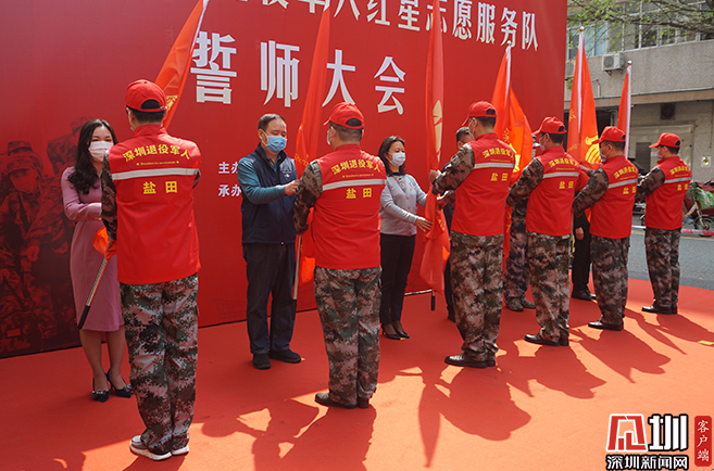 为传承人民军队的光荣传统和优良作风,号召退役军人积极投入疫情防控一线,2020年4月8日上午,盐田区正式揭牌成立退役军人红星志愿服务队并召开誓师大会。
