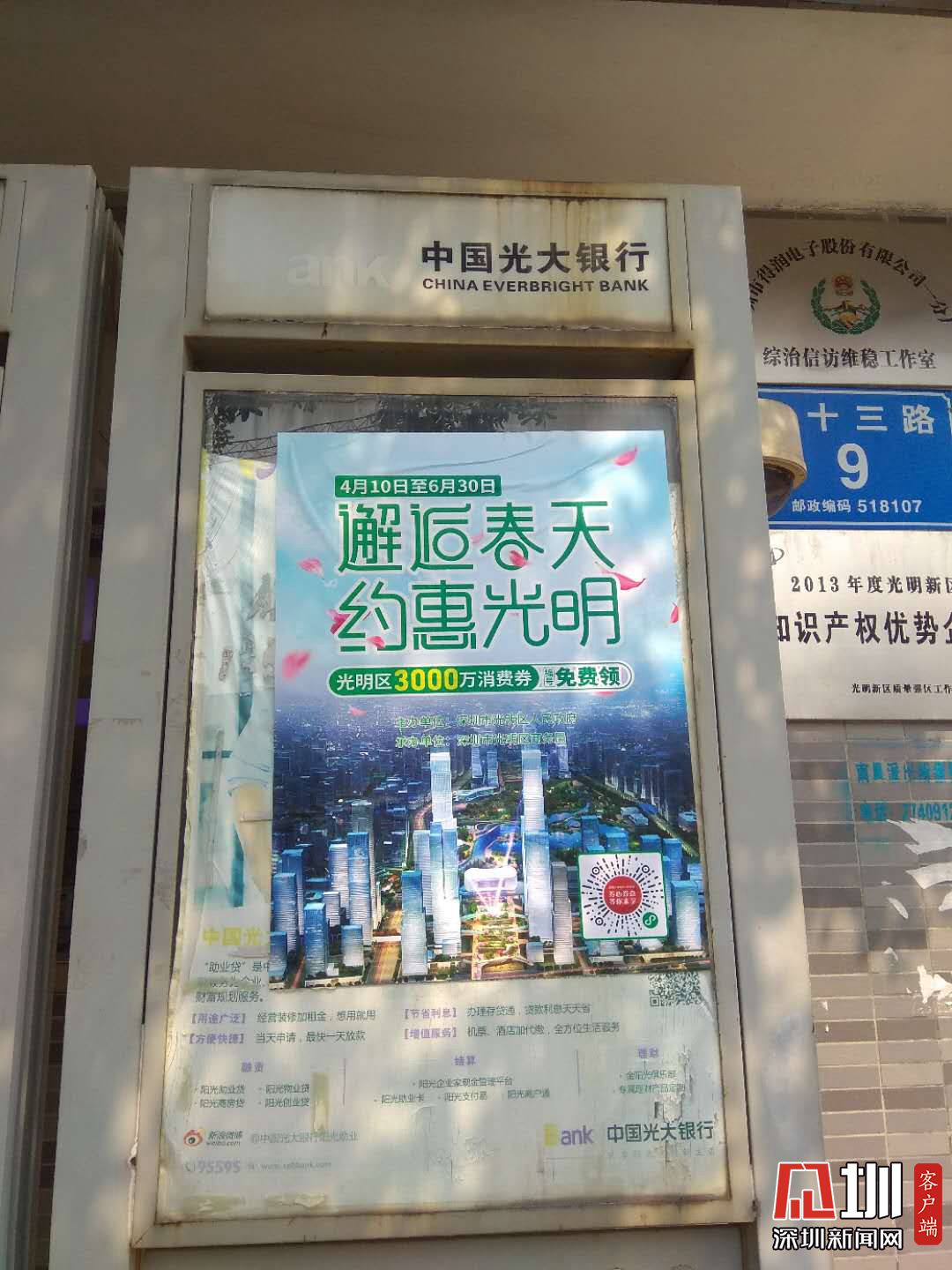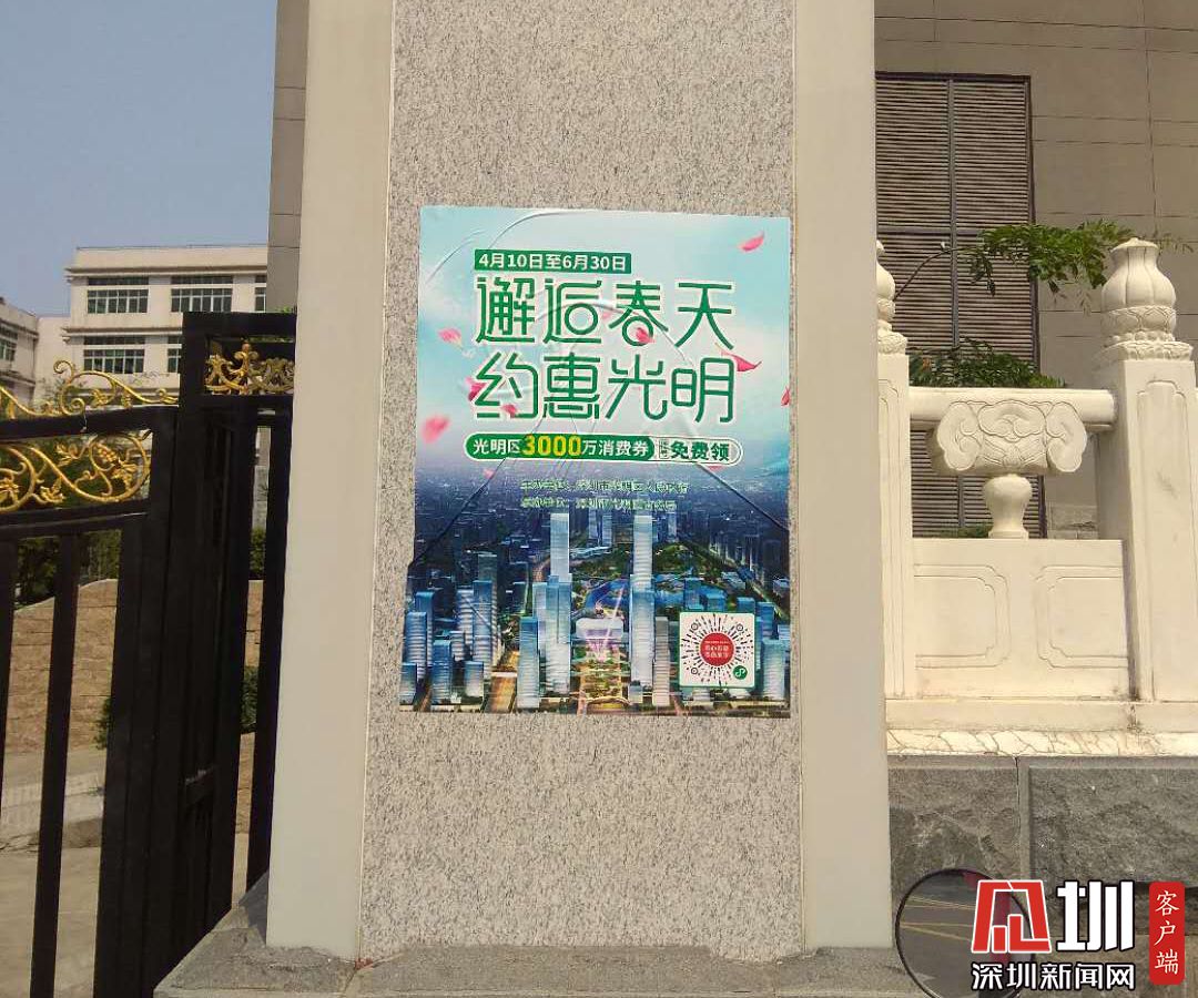 上午11点,记者实地走访光明区多处商业区,了解线下商铺实际用券情况。走访途中,记者发现沿途人行道周边的多处墙面和广告栏,张贴有“邂逅春天 约惠光明”主题消费活动的宣传海报。市民通过手机微信扫描海报右下角的“券享光明”微信小程序码,即可参与消费券预约摇号活动。