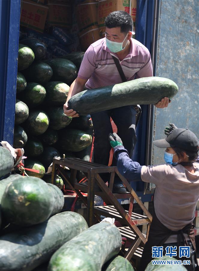 4月13日,在广州江南果菜批发市场,批发商在搬运冬瓜。新华社记者卢汉欣摄