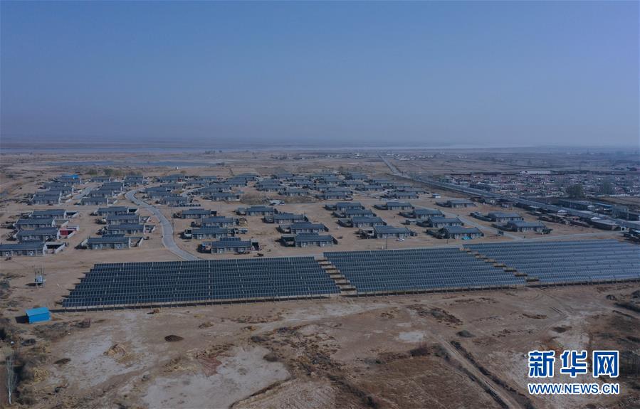 这是4月14日拍摄的杭锦旗呼和木独镇巴拉亥光伏新村(无人机照片)。近年来,内蒙古鄂尔多斯市杭锦旗呼和木独镇着力建设3MW光伏发电项目。该项目位于呼和木独镇巴拉亥光伏新村,涵盖屋顶光伏电站及光伏扶贫电站两部分。屋顶光伏电站由包含建档立卡贫困户的160户村民的屋顶电板组成,并网发电以来,户均年发电收入约5000元。扶贫电站由该镇整合扶贫资金,依托帮扶单位和帮扶企业建设,将于2020年4月底接入电网发电。新华社记者徐钦摄