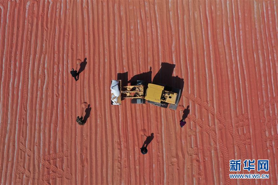 4月13日,在陈巴尔虎旗鼠虫害防治基地,工作人员晾晒毒饵(无人机照片)。随着气温回暖,草原上的冰雪消融,内蒙古自治区呼伦贝尔市开始进行鼠害防治。此次鼠害防治主要通过农机喷撒和飞机投撒毒饵等方式,计划防治呼伦贝尔草原鼠害面积600万亩以上。新华社记者刘磊摄