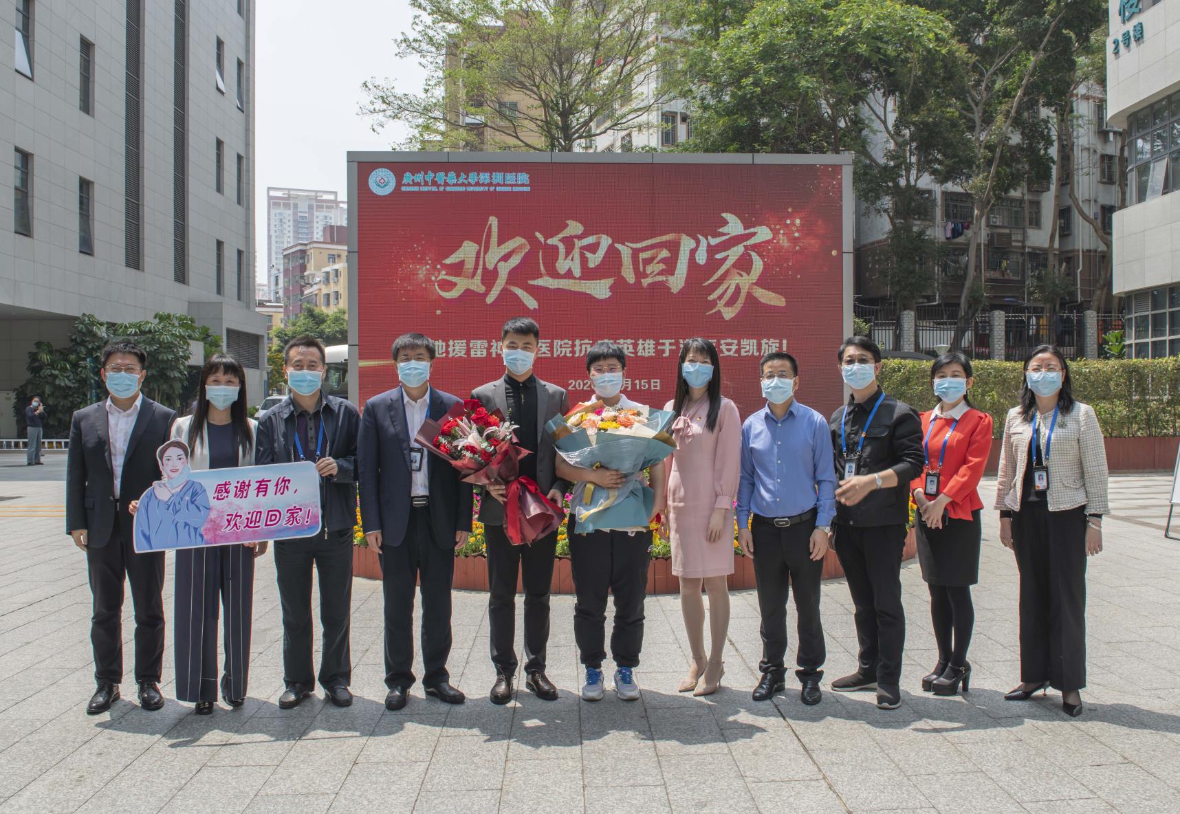 站在医院大屏幕前的合影,令现场人员百感交集,同样的地方,不一样的心情,从2月17日的送行,到4月15日的回归,历经58天,用张天奉书记的话说,这段既短暂又漫长的抗疫时间,牵挂着广中医深圳医院全体职工的心,展现出来的白衣执甲、不畏险阻的精神,必将深深融入医院文化血脉之中。