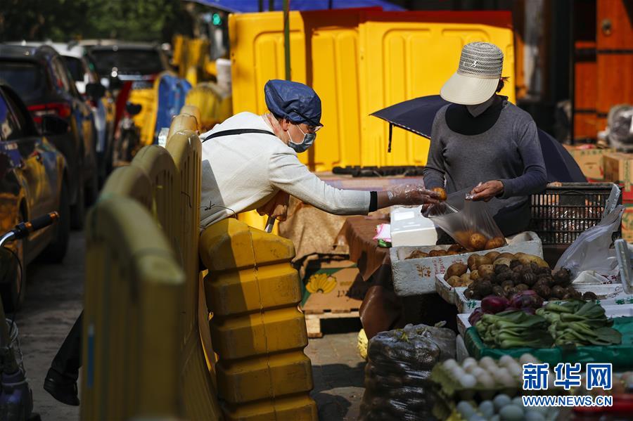 4月16日,人们在武汉街边购买新鲜蔬菜。随着武汉疫情防控形势好转,店铺陆续开业,人们逐步复工复产,城市活力逐渐恢复。新华社记者沈伯韩摄