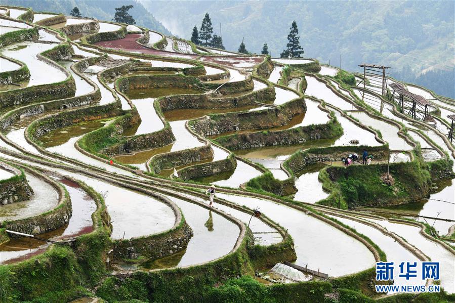 吴贤艳帮助村民插小秧途中(4月18日摄)。新华社记者杨文斌摄