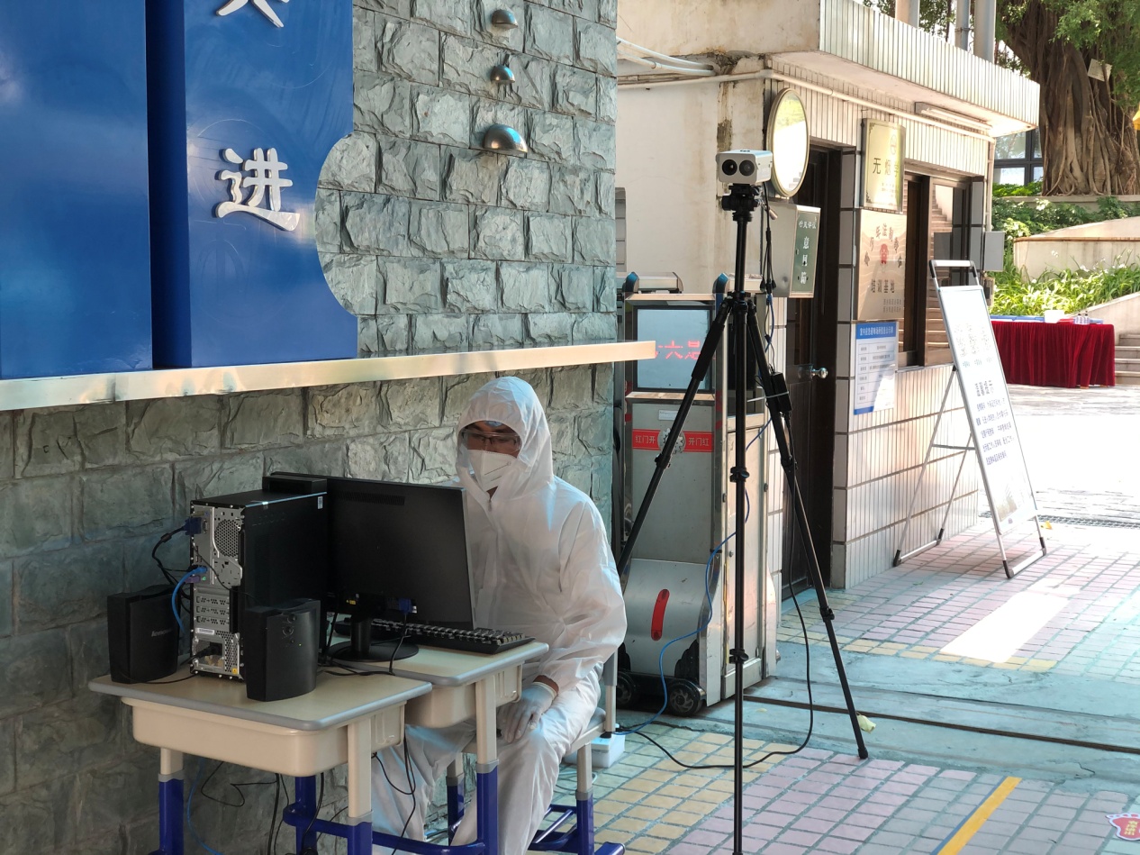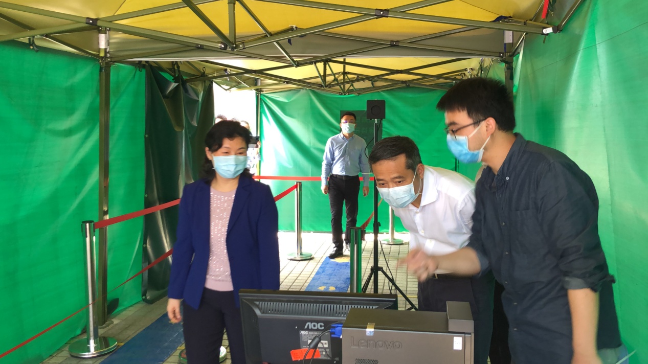 姚任一行测试学校进出入体温测试仪