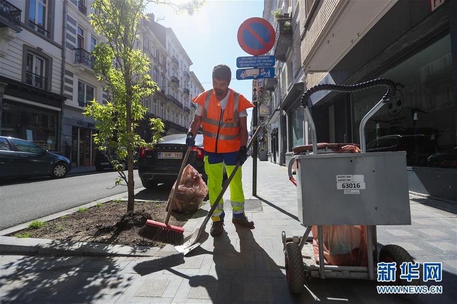 4月21日,一位名叫戈芬·蒂埃里的清洁工在比利时布鲁塞尔街头工作。在比利时,尽管新冠疫情仍在持续,但是不少工作者忙碌在各自的岗位上,在特殊时期下为他人服务着、奉献着。新华社记者郑焕松摄