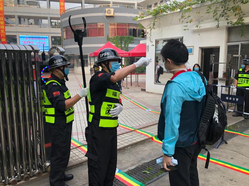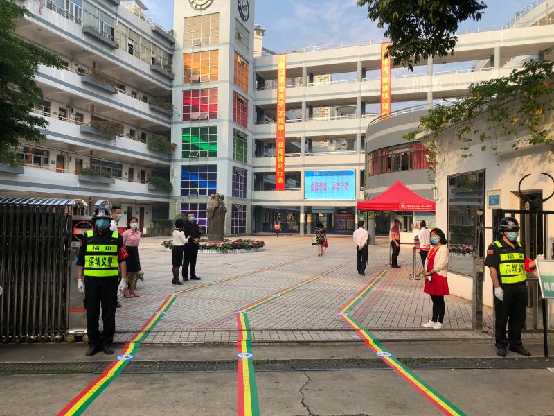 深圳新闻网4月27日讯(见圳客户端、深圳新闻网记者 何静 江争志)“在家待了几个月,孩子们应该很开心回到校园。”4月27日早上不到七点,彩田学校校长徐连佳便带着学校行政班子在校门口迎接初三学子的到来。“我们为了营造健康安全的开学环境也做了很多准备,除了上课外,就餐、饮水、午休、如厕我们都有专人负责,确保学生不扎堆。”据了解,彩田学校初三年级共9个班,393名学生,均在当天回到学校。