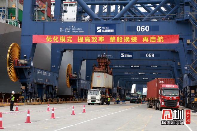 值得一提的是,新的“整船换装”模式推出后,盐田港换装的便利性与时效性已基本接近于国际中转大港水平。经盐田国际集装箱码头有限公司市场分析预测,“整船换装”新监管模式的落地实施,或将为盐田港带来100万标箱的中转量。