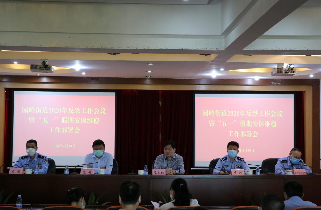 深圳新闻网5月1日讯(见圳客户端、深圳新闻网记者 何静 通讯员 赵方园)为应对当前国内外严峻形势,确保辖区社会安全与稳定,园岭街道于4月30日上午召集街道反恐工作领导小组成员单位、部门负责人及辖区重点防控单位的负责人召开“2020年园岭街道反恐工作会议暨五一假期安保维稳工作部署会”。街道党工委副书记、人大工委主任苏志权,街道四级调研员范丹,八卦岭派出所副所长麦冠,通新岭派出所相关负责人出席会议。区反恐大队副大队长于玮应邀参会并作工作指导。