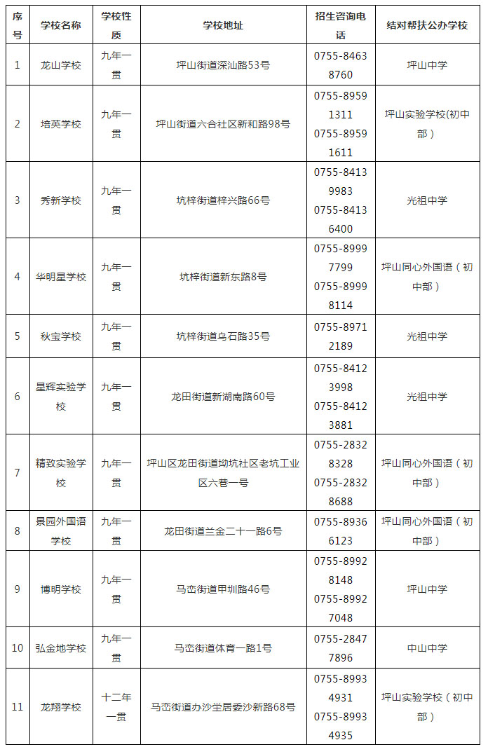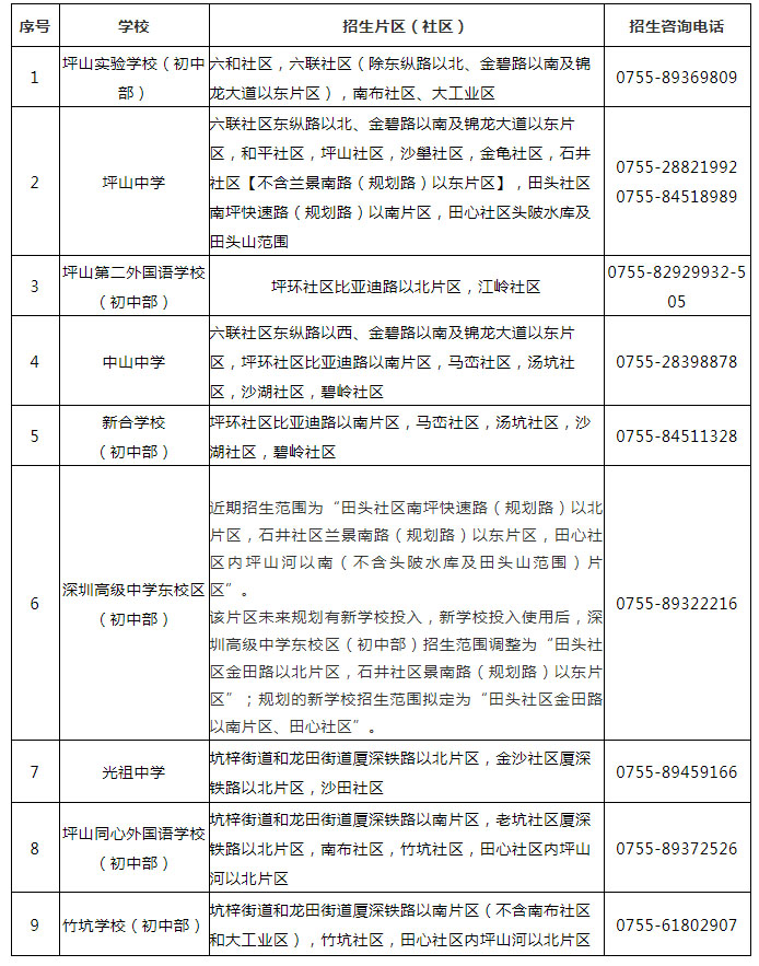②老坑社区厦深铁路以北片区为坪山同心外国语学校(初中部)和光祖中学共享学区;