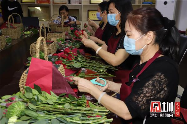 深圳新闻网讯(见圳客户端、深圳新闻网记者 刘嘉敏 通讯员 杨纪欧)疫情期间,不一样的母亲节,不一般的关爱。5月9日下午,深圳市罗湖区桂园街道老围社区党委开展了一场“‘疫’起母亲节、美丽别样”插花活动。社区妈妈们自己动手,用鲜红的安卡拉玫瑰、稀少的绿毛球、苹果叶和康乃馨等鲜花,精心插出芳香四溢的大花篮,送给在社区疫情防控中做出贡献的自己。