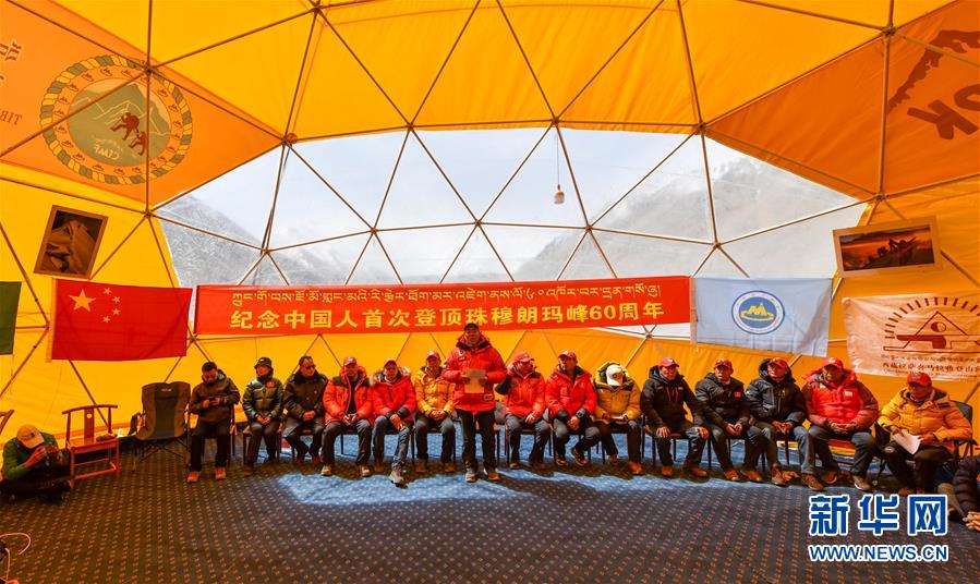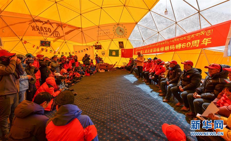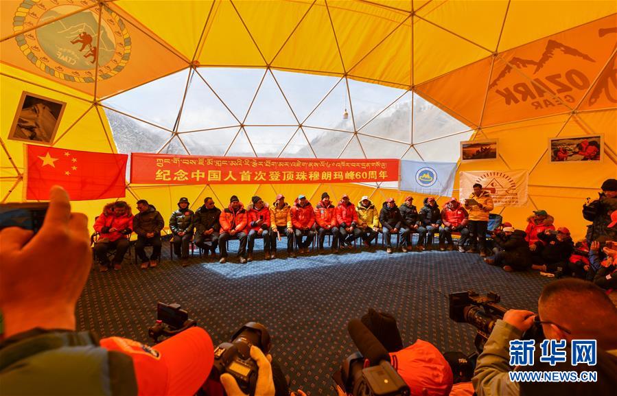 当日,纪念中国人首次登顶珠穆朗玛峰60周年座谈会暨庆祝西藏登山队成立60周年座谈会,在海拔5200米的珠峰大本营举行。