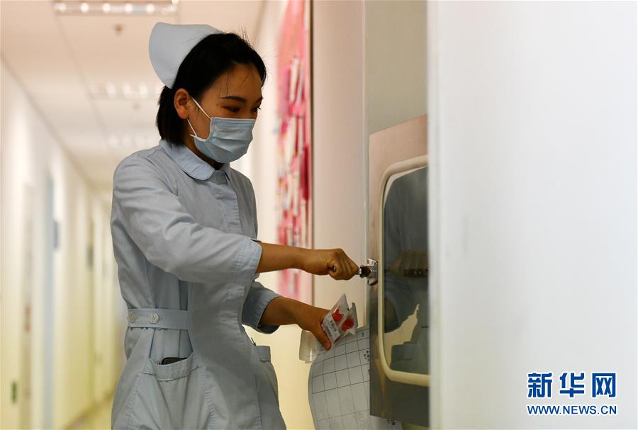 5月11日,张硕在“绿区”打开传递窗准备将核酸检测所需的试管交给“红区”护士。5月11日,天津首批援鄂医疗队队员张硕经过一段时间的休整后,正式回到天津医科大学总医院空港医院开始上班,主要在医院隔离病房“绿区”负责准备防护物资、协调处理“红区”护士需求等工作。新冠肺炎疫情发生后,“90后”张硕第一时间报名参加援鄂医疗队,并在武钢二院担任“红区”护士。在52天的战“疫”生涯中,张硕光荣入党。新华社记者 李然 摄