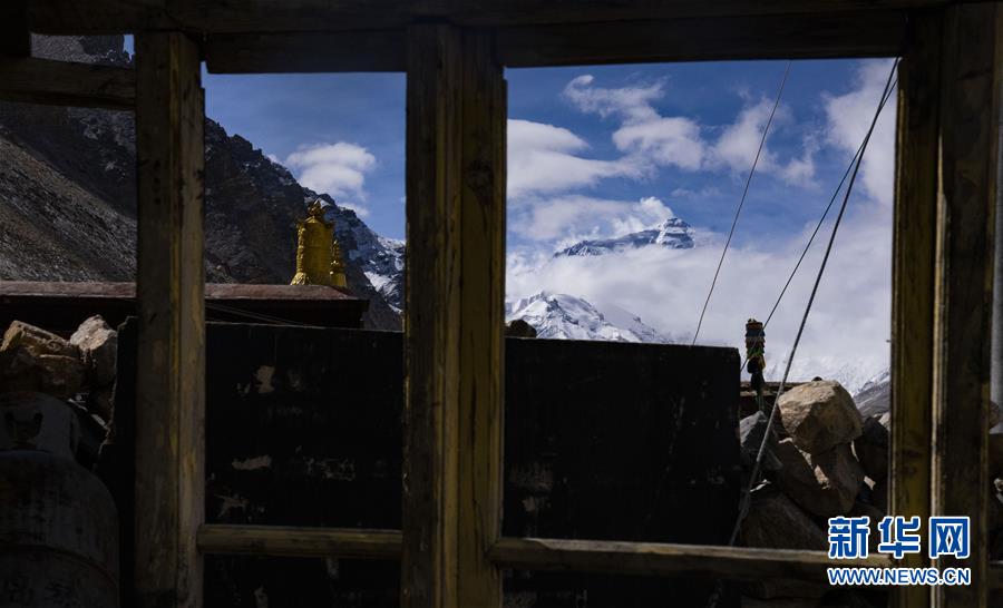 11时57分,从绒布寺僧舍窗口看向珠峰(5月1日摄)。新华社记者 普布扎西 摄