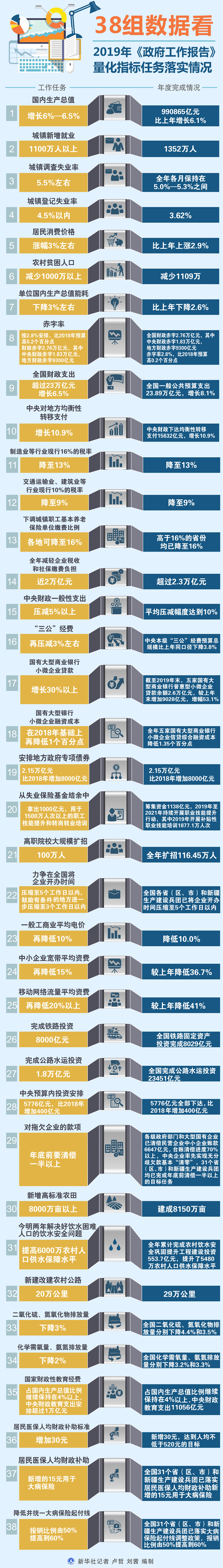 新华社北京5月19日电(记者高亢)全国两会召开在即,国务院19日对外公布2019年《政府工作报告》量化指标任务落实情况表,38项指标任务均已完成。
