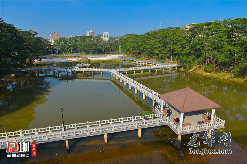 据介绍,大浪体育公园共有两部分,分布在华明路的两边。除了此次改造提升的公园广场及登山道外,在华明路泥头咀段高架桥下的人工湖部分已于2018年完成升级改造。通过绿化提升、湖水治理、修建栈道、戏水平台,营造出水影绿树,花草环抱的湖光水色,丰富了公园景观效果。现在,全新开放的大浪体育公园已成为周边居民休闲、观光、娱乐、健身的首选之地。