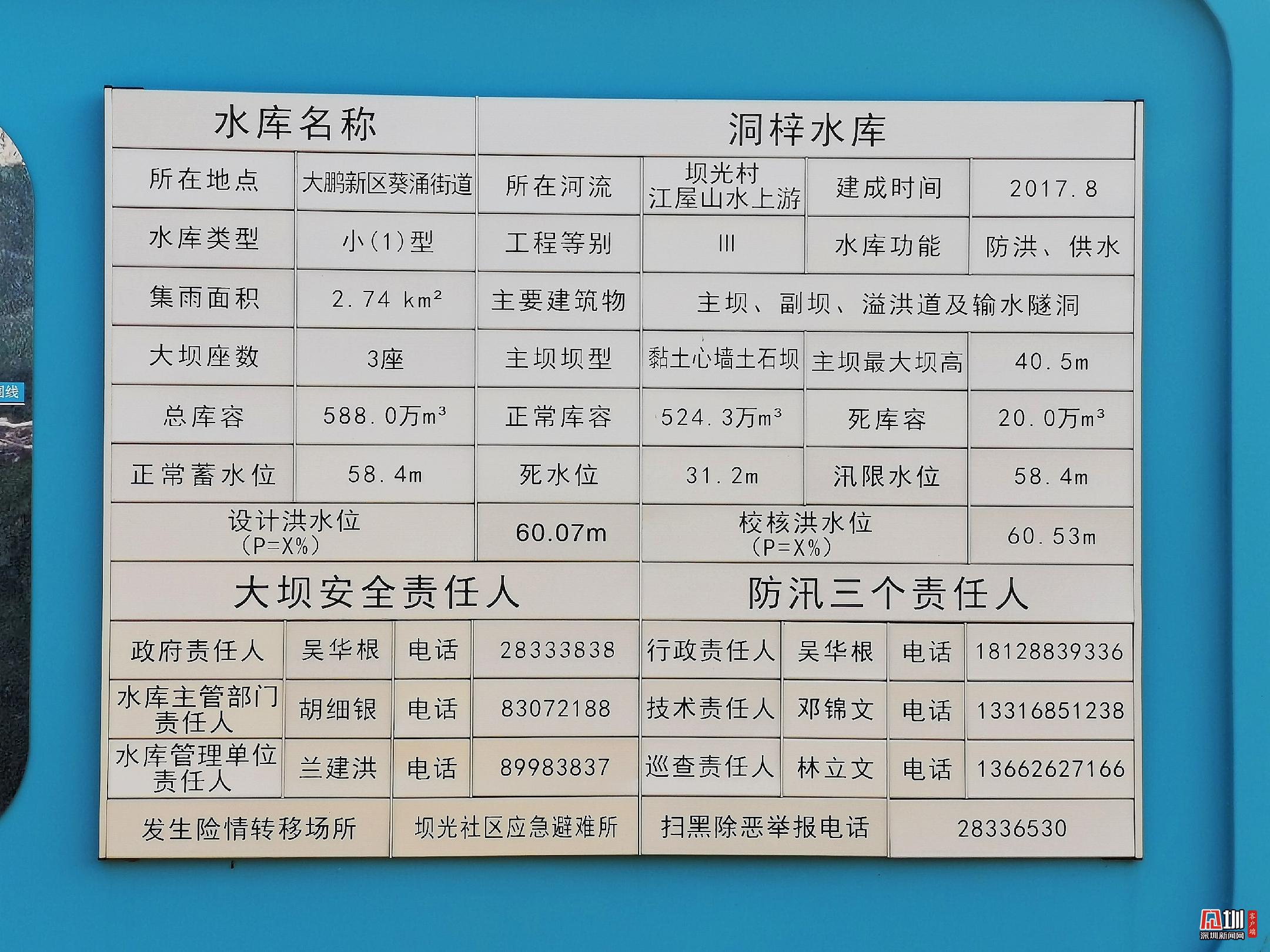 5月16日下午,在大鹏新区葵涌坝光生物谷的洞梓水库,深圳市东部水源管理中心主任兰建洪向九三学社近20位专家和社员详细介绍了洞梓水库的各方面情况,兰主任指出,洞梓水库设计标准为100年一遇,校核洪水标准为1000年一遇。水库目前以防洪为主,整体运行水位均在正常范围内运行。日常巡查中,无论是雨量监测、环境水温监测、环境气压监测,还是水位监测和主坝安全监测,均无任何故障。