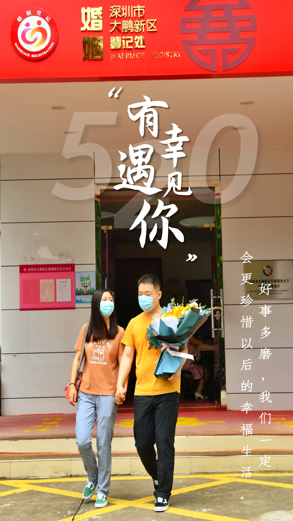 见圳客户端·深圳新闻网5月20日讯(见圳客户端·深圳新闻网记者 谢雨婷 李小辉)作为信息时代的爱情节日,在经历疫情之后,今年的“520”显得尤为特别,很多人对于爱情有了更多的感悟,5月20日,大鹏新区通过提供网上预约加现场预约的形式共为41对新人办理了登记手续。