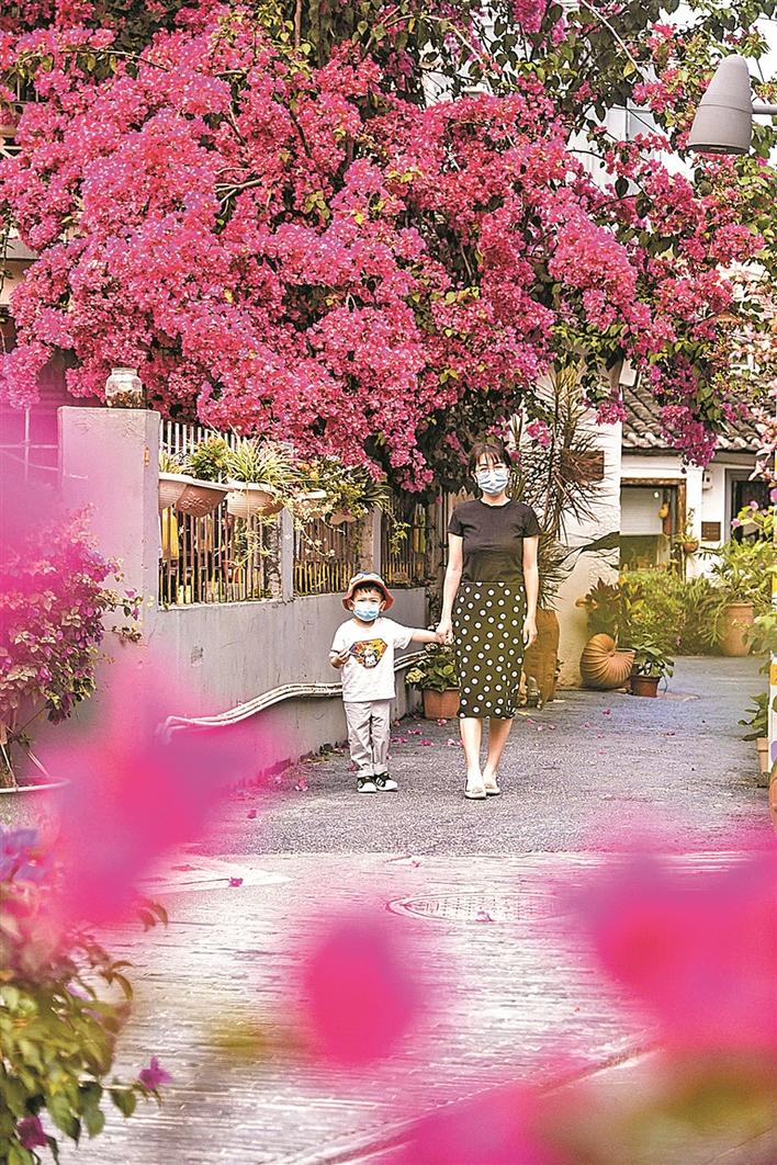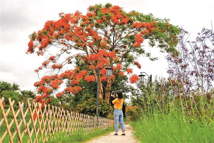 深圳新闻网讯 五月,龙华区各园区、景点、大街小巷遍地花海,随手拍都美如画。近日,记者走访了观澜版画基地、上围艺术村等园区看到,园区内的美景让人流连忘返,红似火的凤凰木,花开正艳的三角梅,吸引了不少人驻足欣赏、拍照。