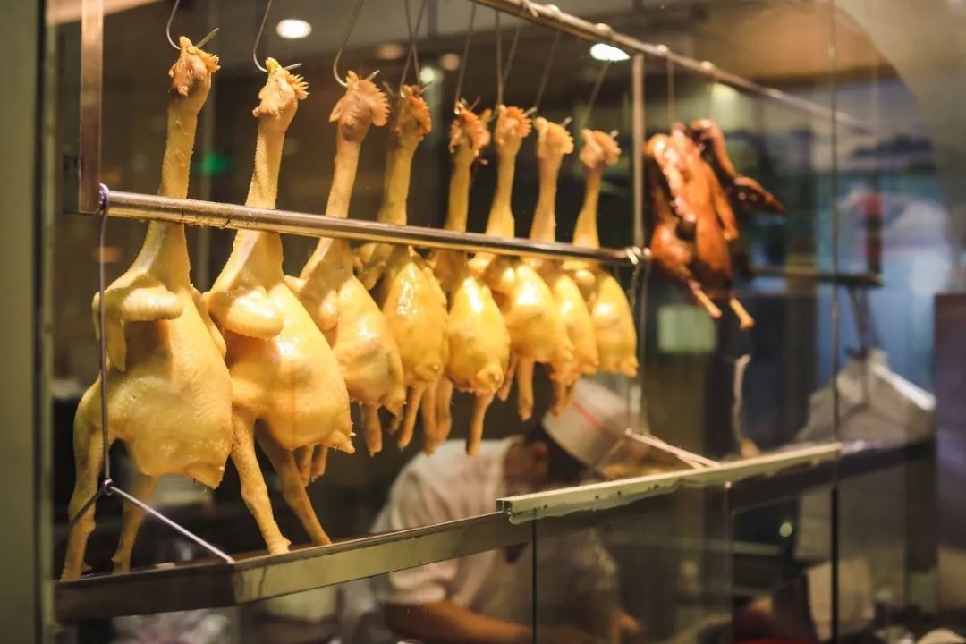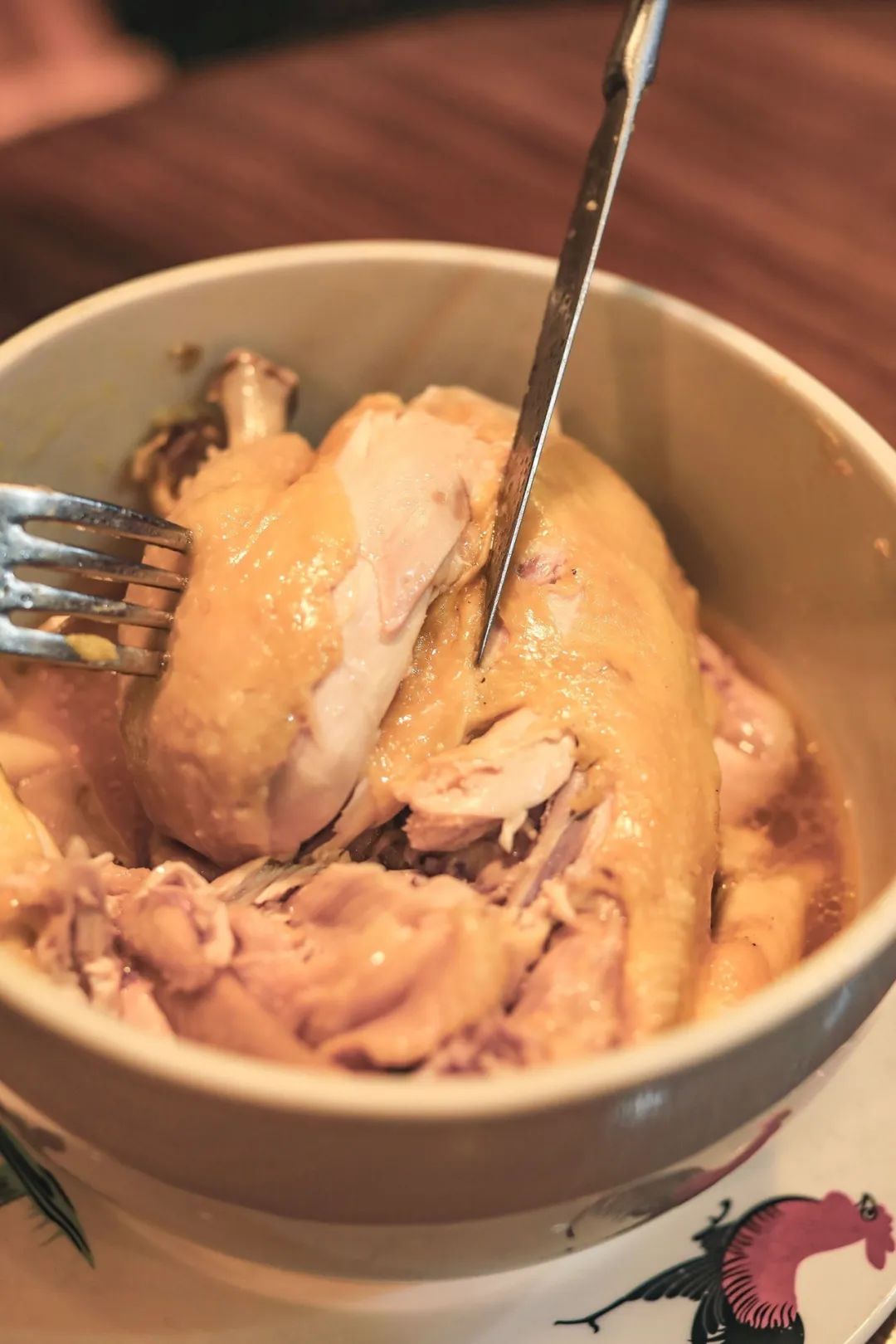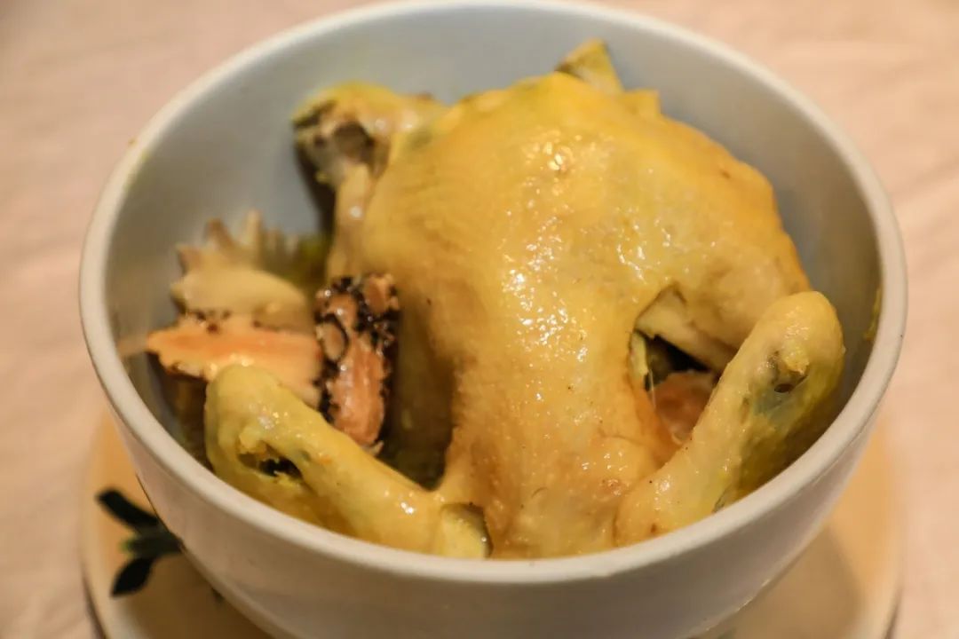 盐焗至表皮金黄的白切鸡看着是不是就让人流口水了呢?