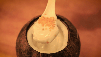 搭配招牌原汁原味椰子奶,撒上老板特意解释“不是大蒜哦”的椰子碎,舀上“DuangDuang”一大勺入口即化!