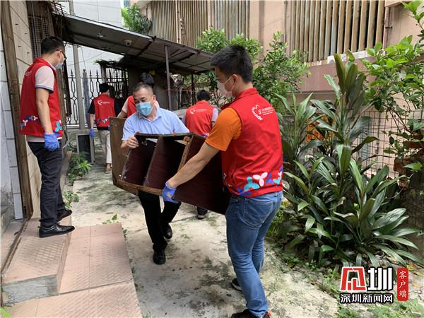 深圳新闻网讯(见圳客户端、深圳新闻网记者 刘嘉敏 通讯员 杨纪欧)6月10日,一群特殊的“搬运工”正把一块块木板、瓷砖等,从楼梯间拿到外面的垃圾站,把废弃的桌椅板凳等装进清运车,阳光很强烈,他们挥汗如雨,他们是罗湖区桂园街道老围社区党群服务中心的工作人员,正在为深圳市争创第六届全国文明城市而奋战,与名仕阁小区的物业人员一起,清理小区里的卫生死角。