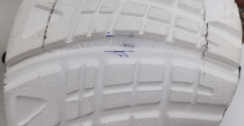“二看” 购买时尽可能选用品牌型号等标注清晰的产品,仔细查看吊牌标注的产品的参数信息如颜色、材质等是否与产品相吻合。同时,可通过左右脚比对查看童鞋的外观有无瑕疵或缺陷。还应查看鞋帮缝合线和帮底粘合缝,检查是否有断线、鞋帮缝合线是否整齐,胶粘帮底结合部位是否平整无沟坎、无虚缝和开胶。