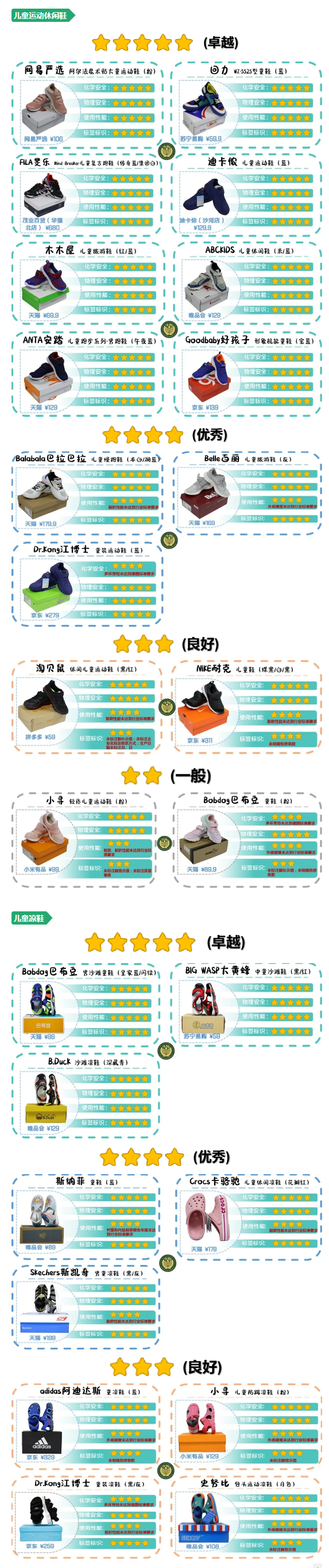 以下是25款儿童鞋总评表