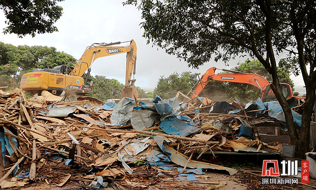 深圳新闻网2020年7月8日讯 (见圳客户端、深圳新闻网记者 谢燕丽 通讯员 余勇 黄旭娜 文/图)7月7日,光明区凤凰街道由执法队牵头,组织多个部门参与联合执法行动,对塘尾社区辖区光明大道段与塘家北路交汇处北侧地块——塘家农庄临时建筑进行强制拆除,清拆16处违法乱搭建,建筑面积共约1200平方米,消除临时建筑安全隐患,切实提升地铁6号线沿线市容环境。