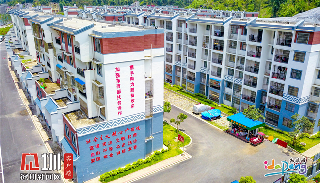异地搬迁安置区环境优美、建筑整齐划一。在东西部扶贫协作的助推下,以往居住在大山中的贫困户现已多数搬进统一修建的移民安置区。