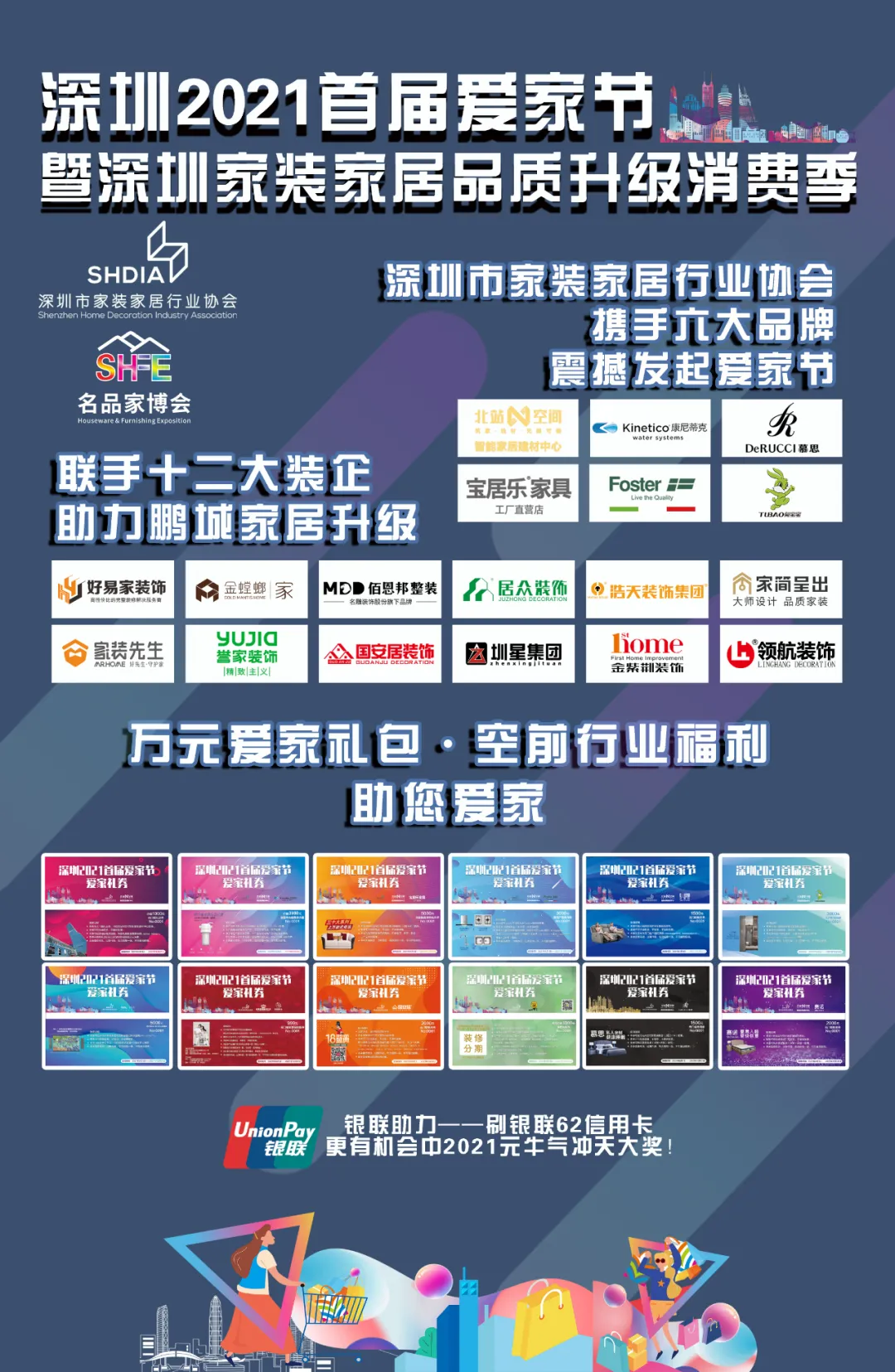 为何协会要主办2021首届“爱家节”活动?深圳市家装家居行业协会李晓锋会长表示:为贯彻执行深圳市人民政府举办“深圳购物季”系列促销活动方案,协会决定联合深圳市银联金融网络有限公司、北站N空间等6家商户,制定深圳2021首届“爱家节”暨深圳家装家居品质升级消费季实施方案。他说“家装家居是关系到千家万户美好生活的大宗消费,特别是在疫情之后,如何打造健康品质家居成为市场关注的重点焦点。如何引导消费者提升品质、启发需求是本次消费季‘爱家节’系列活动的主要目标”。