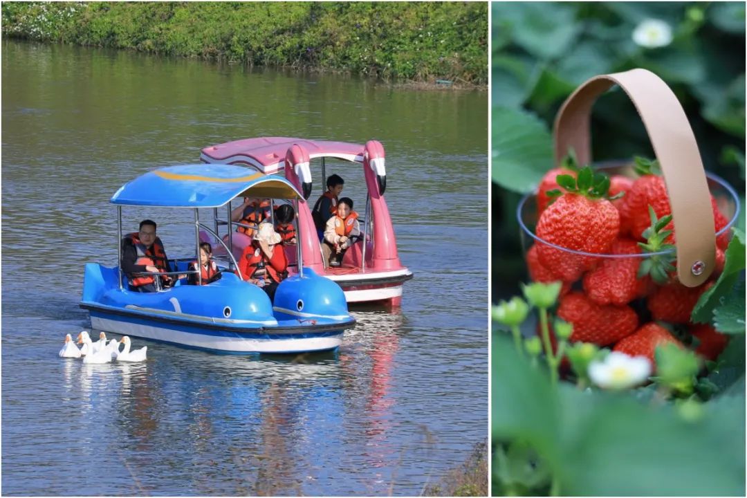 元宵佳节,来光明欢乐田园开启一场花田美学之旅,千亩油菜花海已进入全盛期,正以最浓烈的金黄礼赞春天。浓郁的金黄肆意铺展,像是给大地绘就的春日油画。登上观景山,金色波浪层层叠叠,直至天际,蜜蜂在花蕊间忙碌,奏响春的乐章。这场美学之旅将持续至3月,让你远离城市喧嚣,回归自然怀抱。这里还有超多游玩项目等你体验:搭乘复古花海小火车,于花径间穿梭,风过处金粉沾衣;驾驶生态游船,泛舟碧波之上,看白鹭掠过粼粼水光;春天的采摘园里,连空气都弥漫着草莓的香甜气息,红宝石般的果实待人采撷,甜蜜滋味满溢心间,采摘乐园中欢笑与花香交织成曲。来光明欢乐田园,赴一场与春天的约会 !