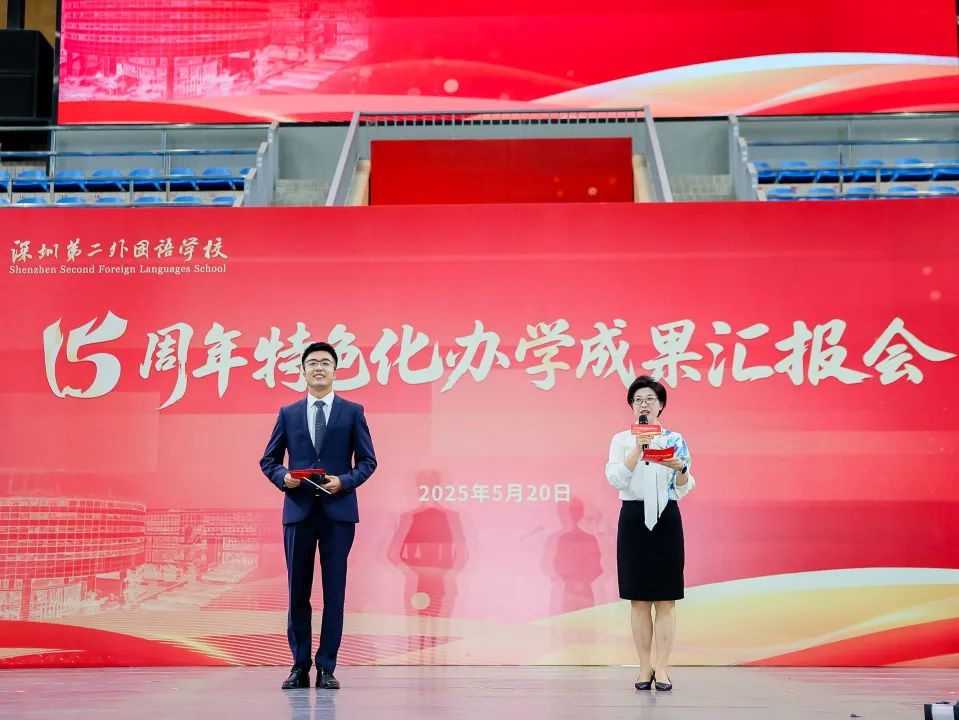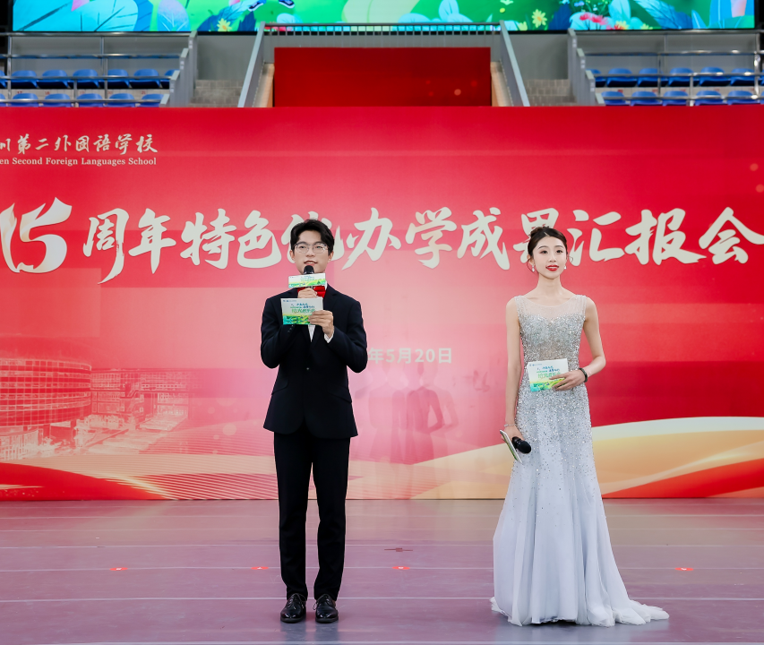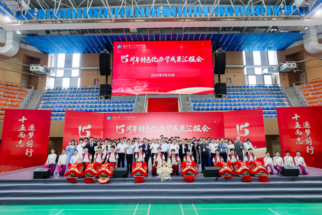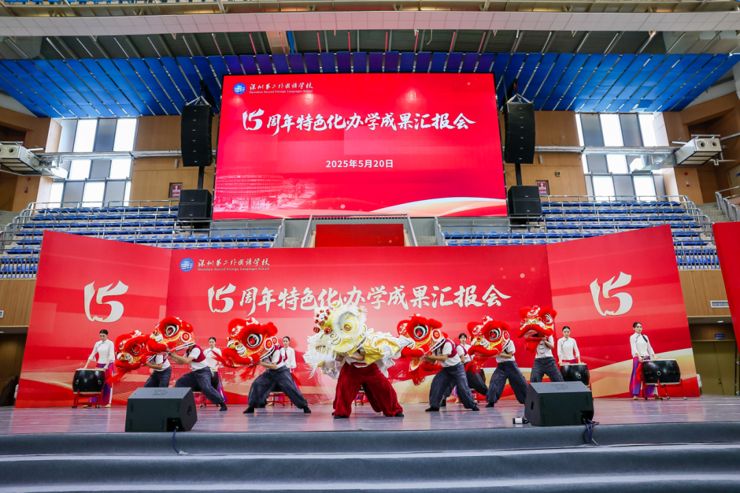 5月20日下午2:00,我校十五周年特色化办学成果汇报会隆重举行,全校师生齐聚体育馆,共襄盛会。值此十五岁生日之际,我们很荣幸地邀请到深二外历任校领导出席活动,共同见证深二外十五年的成长。在庄严的升旗仪式后,大会在我校追光舞蹈团热闹的《醒狮》表演中正式启幕。