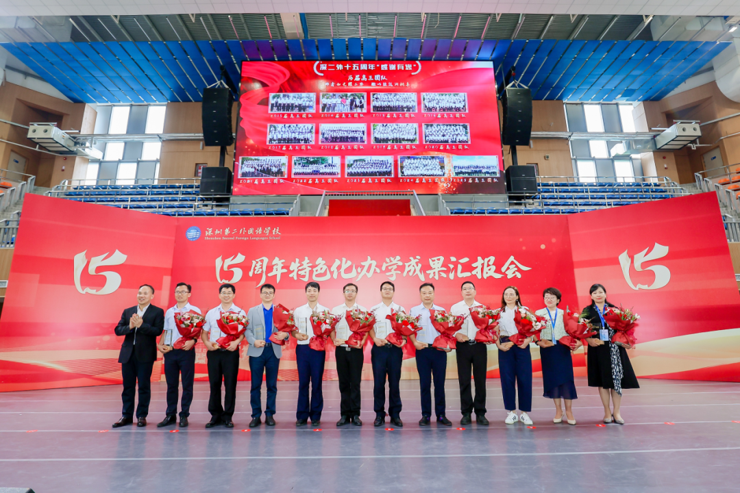 十五年走来,那些为深二外发展倾注心血的身影,一直在默默地助力深二外学子坚定前行。校党委王东文书记为他们颁奖,并致以最崇高的敬意。他们来自不同的岗位,拥有不同的身份,但都是教育的摆渡者,更是青春的引路人。感谢他们的持续耕耘,在深二外这片教育的沃土上,撒下希望的种子。