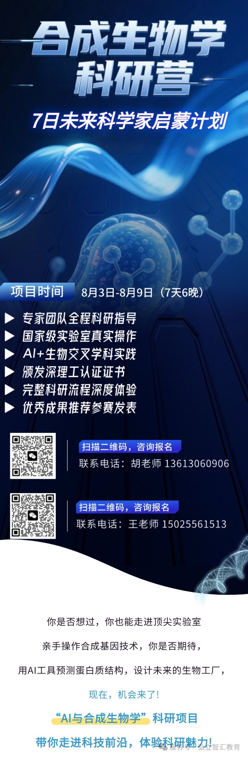 7日未来科学家启蒙计划,为您打造通往世界名校的专属科研履历!