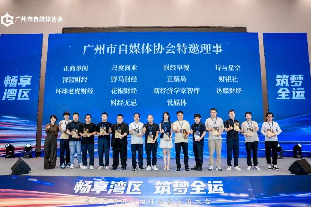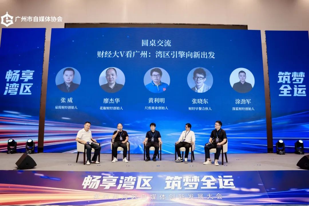 随着发展力量不断壮大,协会积极吸纳全国优秀财经自媒体加入,邀请“正商参阅”“环球老虎”“野马财经”等15位在财经领域具有影响力的自媒体担任协会特邀理事单位,共同为城市发展建言献策。现场,特设“财经大V看广州:湾区引擎向新出发”圆桌对话环节,邀请“花椒财经”“尺度商业”“财经早餐”和“深蓝财经”等头部财经自媒体,以经济韧性、产业协同和新质生产力为切口进行深入探讨。“花椒财经”创始人廖杰华指出,广州可立足商贸底蕴与制造业优势,加快产业智能化升级,强化枢纽功能,走特色鲜明的“先进制造+商贸服务”新质生产力发展路径。“深蓝财经”创始人涂劲军则表示,湾区可通过加速市场一体化,推动广深港三地分工协作(广州转化、深圳研发、香港资本),打造湾区版“南湾+硅谷”。