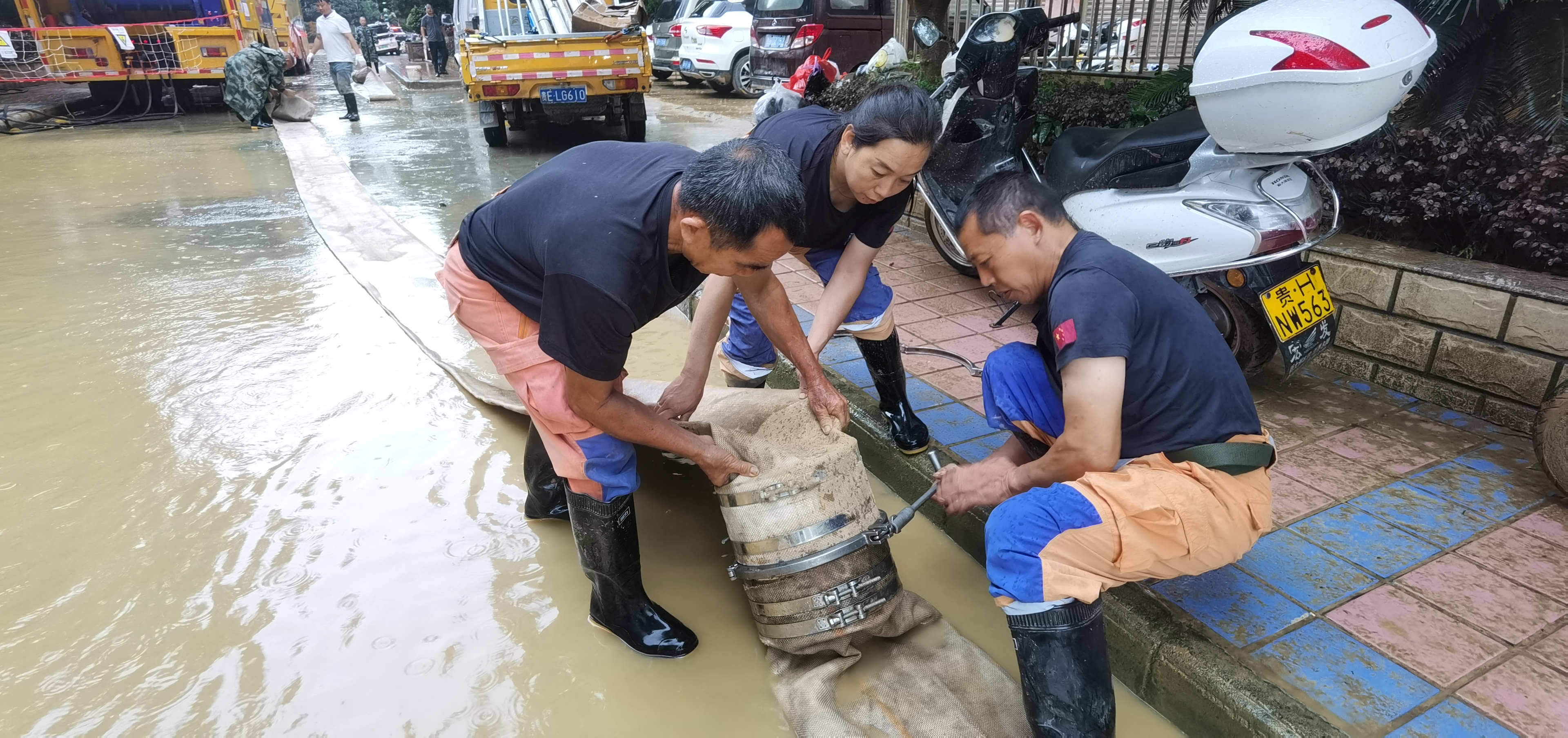 随着洪水渐退,工作重心转向排涝清淤和防疫消杀。救援队动用高压清洗车、垃圾压缩车、清污车等专业设备,昼夜不停清理地下车库、学校、街道等场所的积水和淤泥,并利用从南海调运的防疫物资,对受灾区域进行全面消杀,严防灾后疫情。“新购装备即将投入到清淤工作,我们会全力以赴支援榕江。”南海菠萝救援服务中心创始人王治勇说。