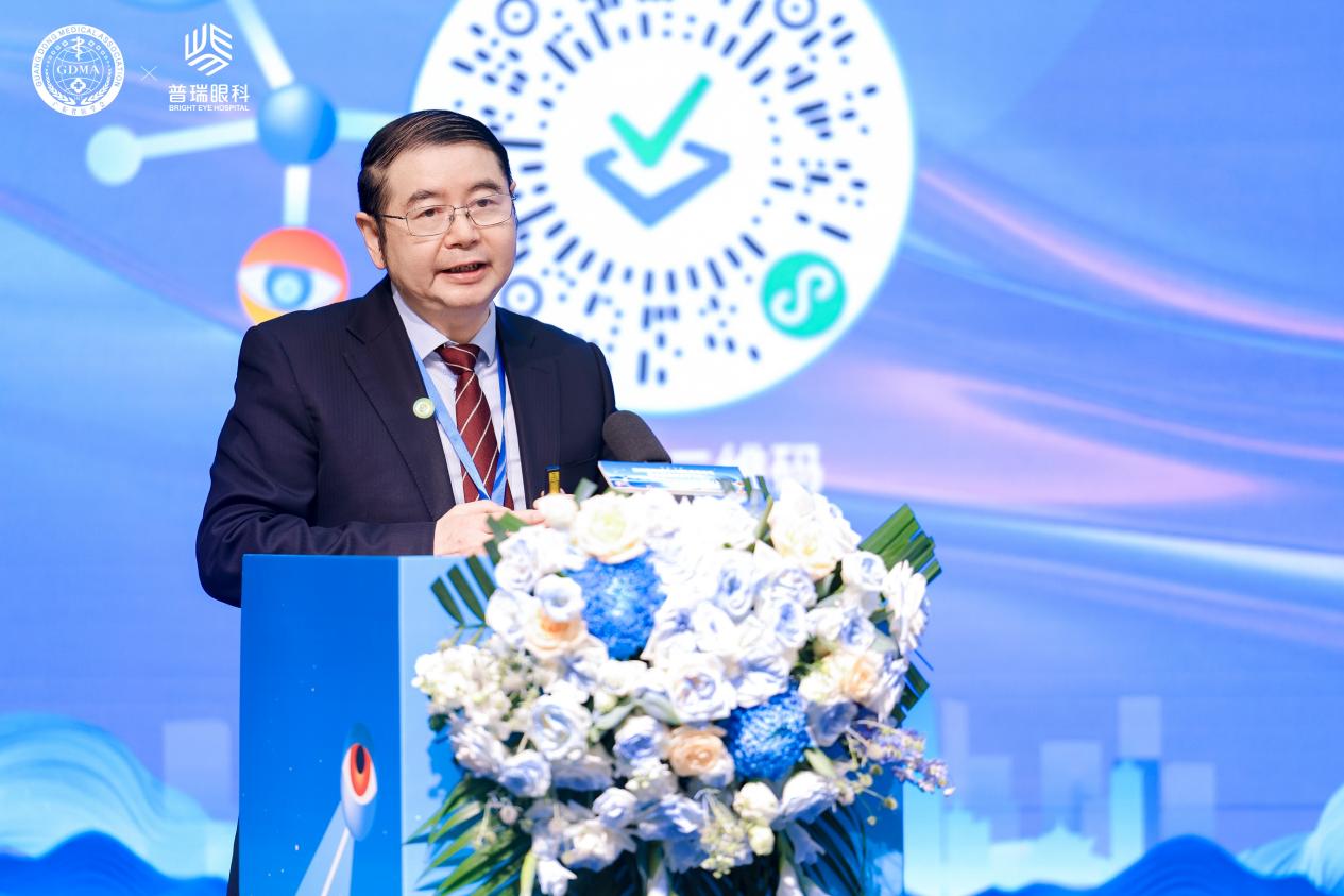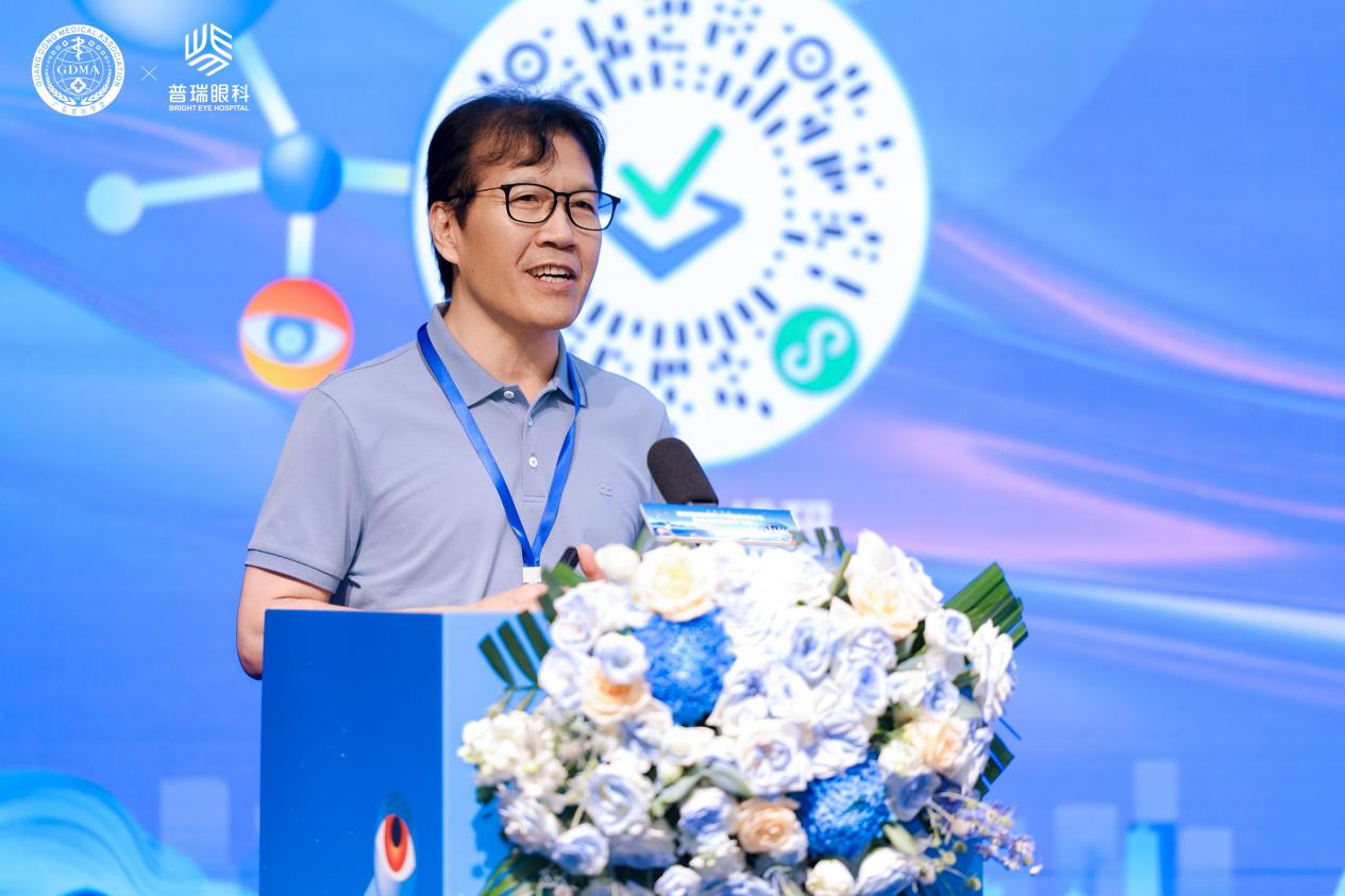 普瑞眼科医院集团副总经理、大湾区总经理刘中香先生发表致辞:“今年是普瑞眼科医院集团成立20周年。大湾区成为普瑞眼科战略布局的重点,目前已落地七家医院。集团坚持以专家立院,集医疗、教学、科研及眼健康管理于一体,引进世界尖端设备,致力于为民众提供高质量的医疗服务。”他指出:“今年是‘十四五’全国眼健康规划的收官之年,但三项覆盖率目标的达成仍面临挑战。面向下一个五年计划,我们也将持续聚焦眼健康领域的需求与突破。”