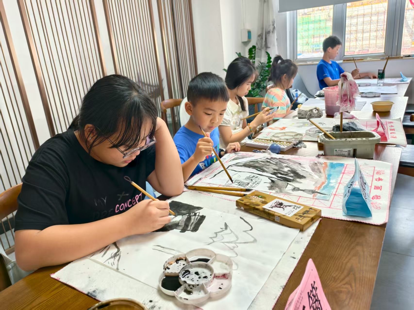 自7月14日起,在两期夏令营活动里,45个孩子收获颇丰,最小的孩子年仅四岁半,跟着老师一笔一画学国画;高年级的同学在围棋对弈中琢磨攻守之道,在趣味互动里感受传统文化的魅力;最远的孩子跟着轮休的家长从邻市赶来,就为不错过这场“家门口的成长营”。