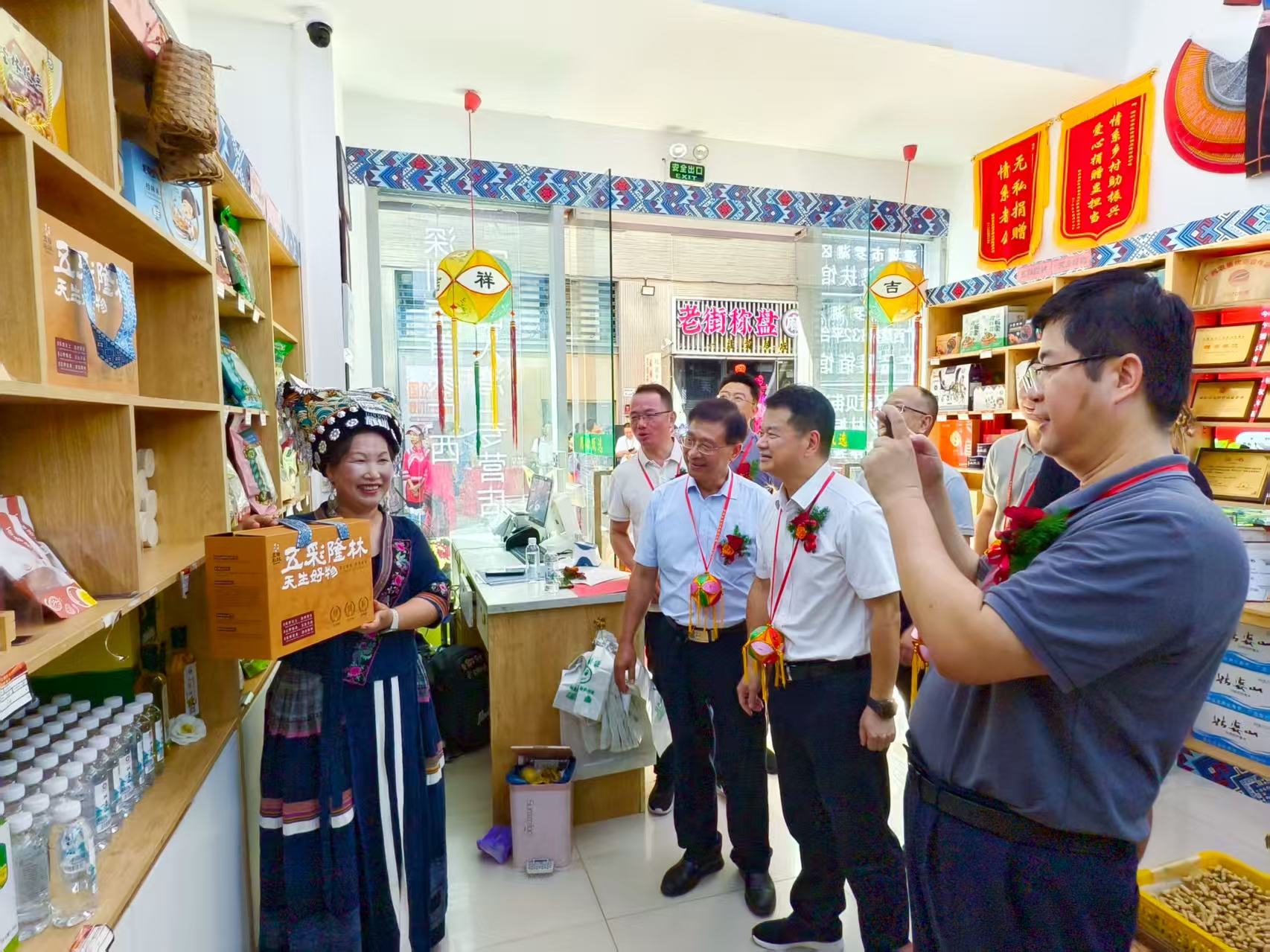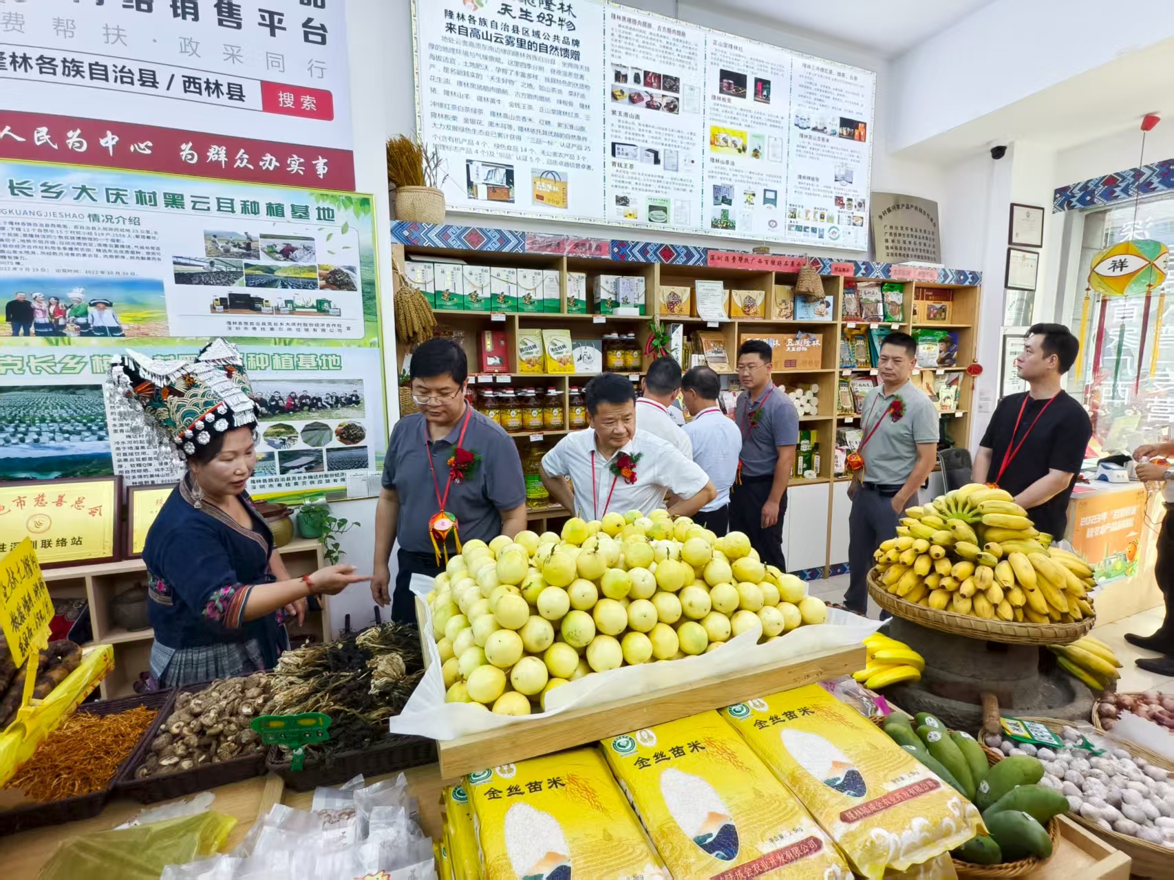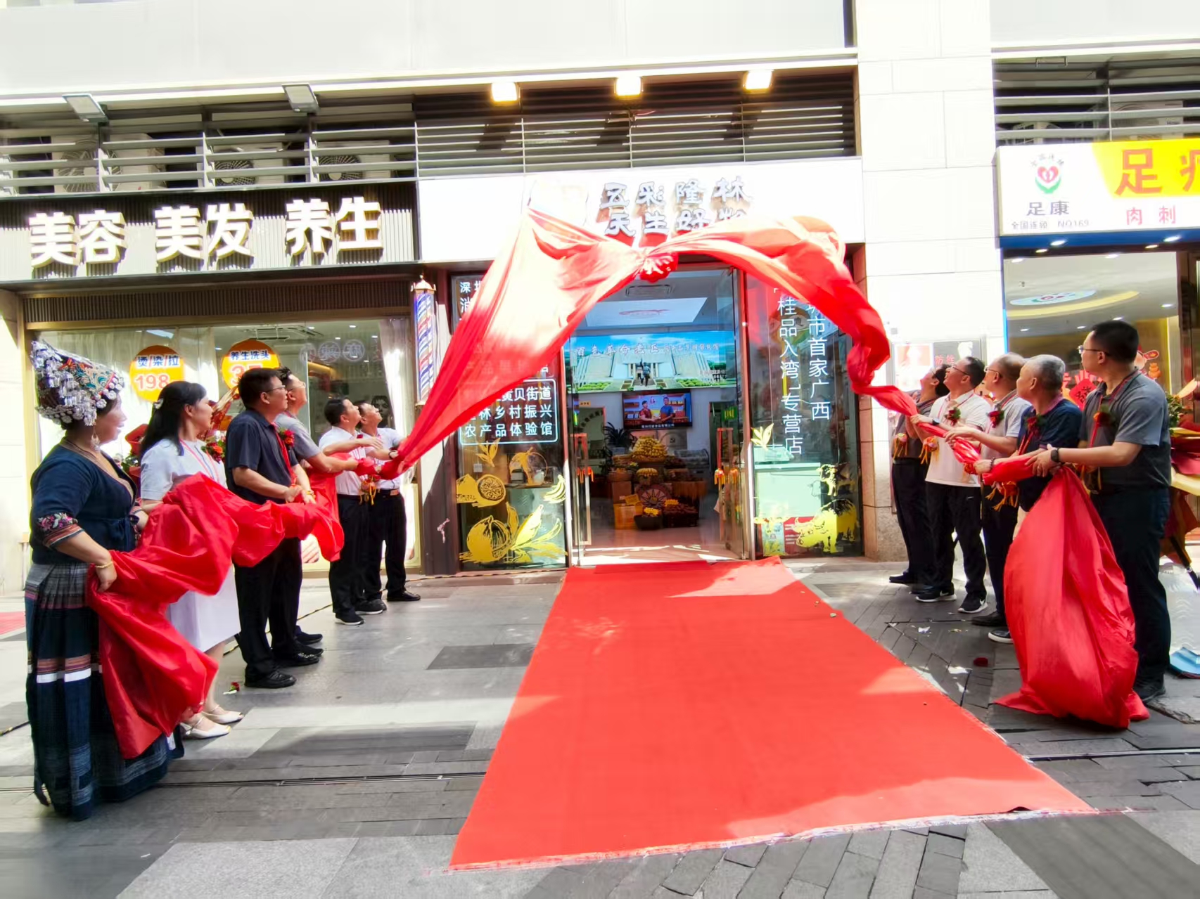 2025年8月11日下午,深圳市罗湖区黄贝街道广西隆林各族自治县乡村振兴农产品体验店举行隆重的揭牌剪彩仪式,现场嘉宾们满怀喜悦共同见证来自广西的“五彩隆林 天生好物”区域公共品牌正式入湾揭牌!这标志着广西隆林各族自治县优质的生态农产品和独特的民族文化,正式扎根湾区市场,迈出了融入粤港澳大湾区经济圈的关键一步。