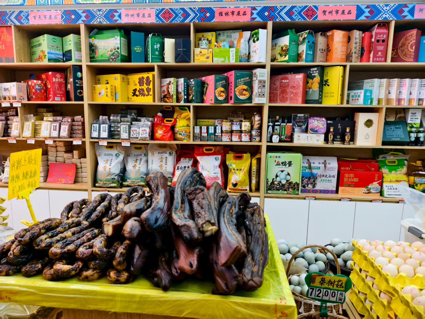 据介绍,隆林农特产品共获得“三品一标”认证25个(其中有机产品4个,绿色食品14个,无公害农产品3个,地理标志产品4个),“圳品”认证5个,香港优质“正”印认证3个;首批获“五彩隆林 天生好物”区域公共品牌授权产品30 个,其中广西隆林红姐食品有限公司获授权产品7个。这为品牌入湾提供了坚实的品质保障。