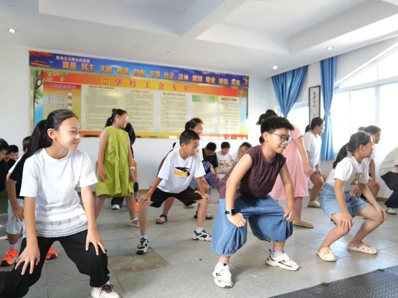 绍兴文理学院的支教大学生们从街舞起源、奥运精神的深度解读,到游戏化动态拉伸激活身体,孩子们在摇滚步的律动体验中,感受自由表达的力量与竞技体育的热血。
