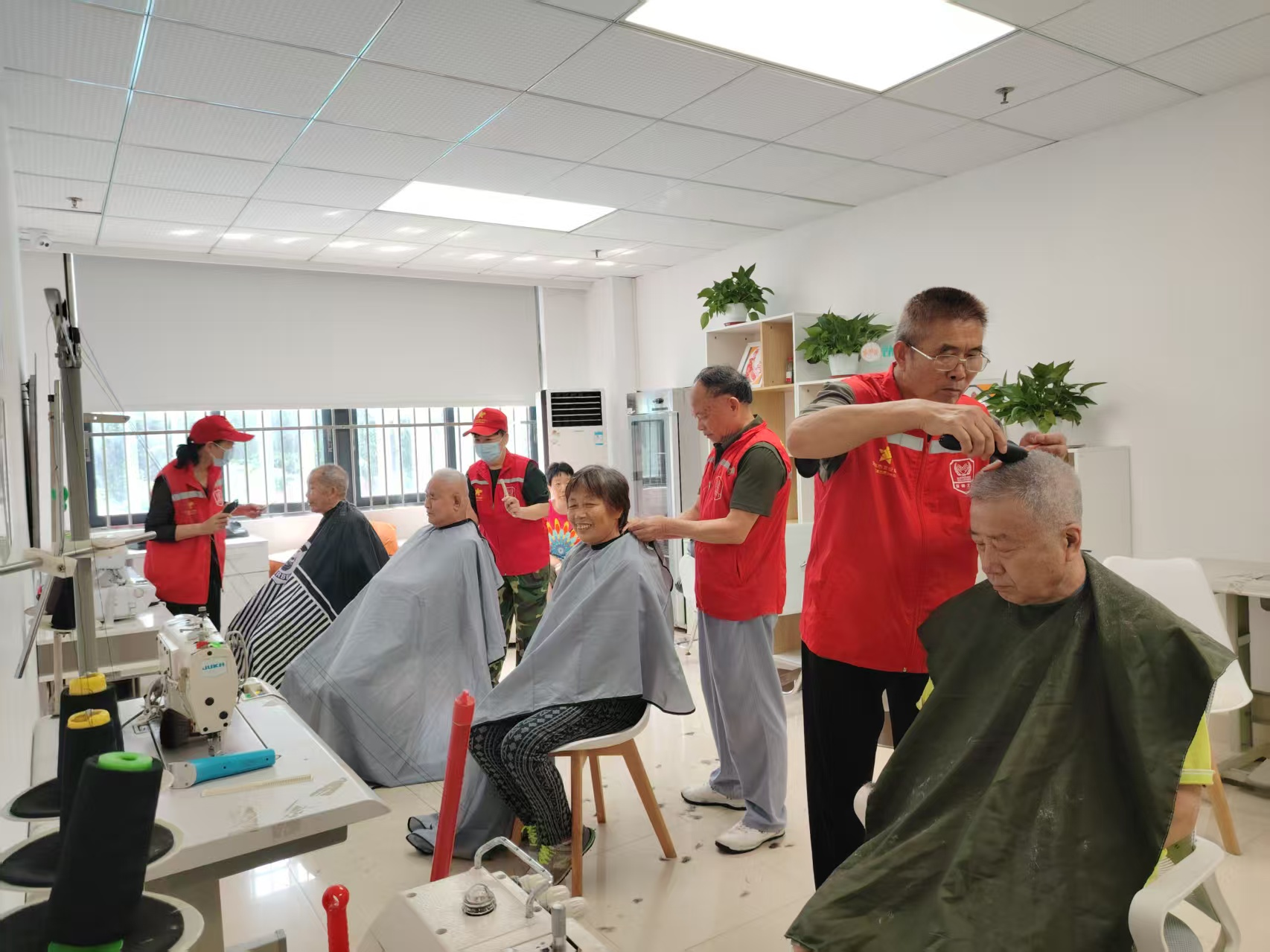 ↑益田社区红星志愿服务队在“好邻帮”服务点为长者义剪