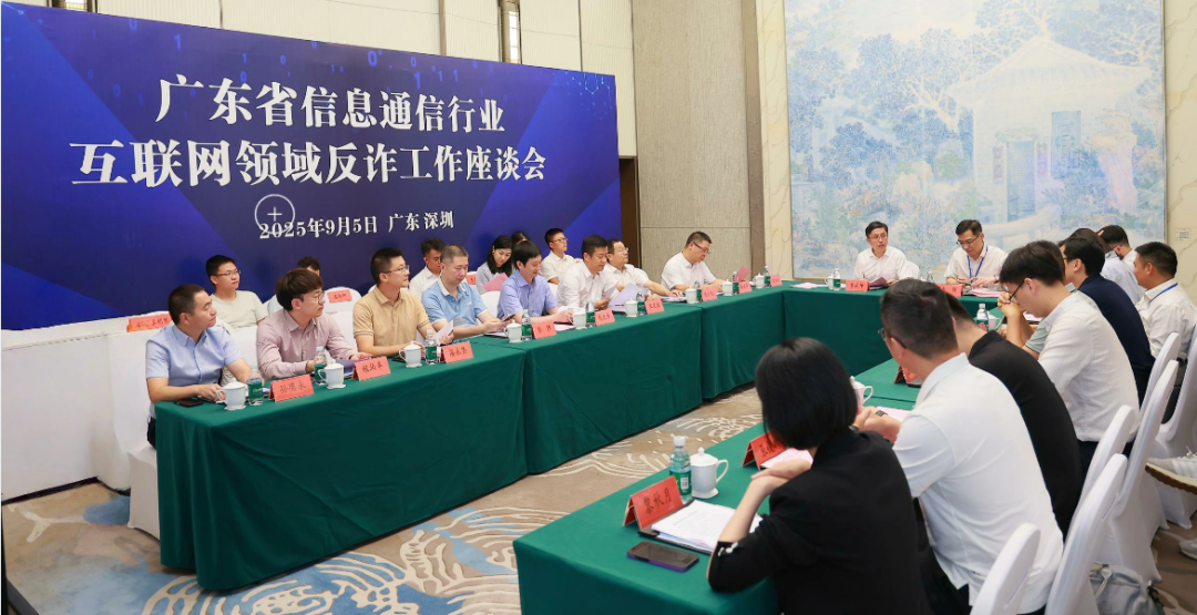 9月5日,广东省互联网协会在深圳前海召开广东省信息通信行业互联网领域反诈座谈会。本次会议通过交流反诈工作经验,凝聚行业共识,进一步推动广东省信息通信行业与互联网企业协同联动,构建更为坚实的反诈防护体系。广东省通信管理局党组成员、副局长李庆坤受邀出席会议,深圳市前海互联网安全保障中心、广东电信、广东移动、广东联通、广东广电、中移互联、腾讯、唯品会、虎牙、动景、酷狗、平安财险、方舟医药、趣丸、津虹、华为、中兴、金桥百信律师事务所、中信科移动、网易、维沃、欢太、百果园网络、埋堆堆、科信安等多家企业代表参会。