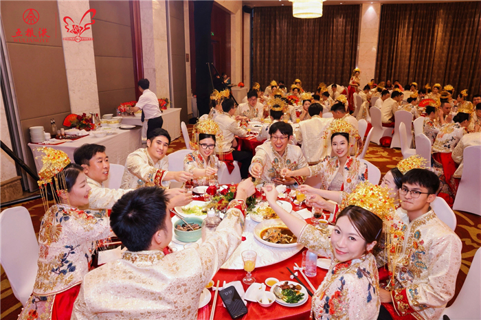 而后,新人们步入婚宴大厅,品尝杭州特色佳肴、举杯共饮五粮佳酿、欣赏艺术表演,现场溢满了幸福的味道。