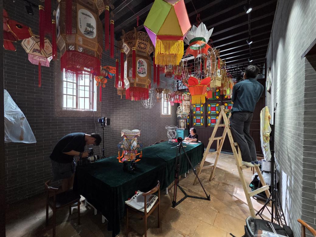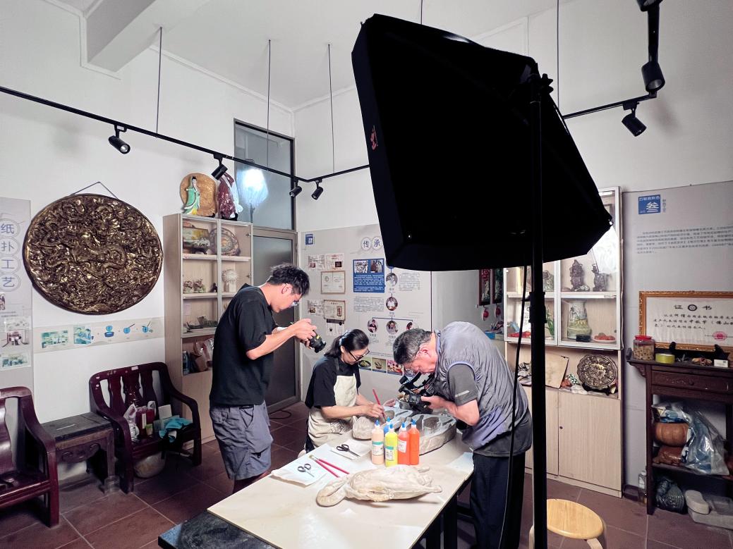 摄制组在何信佛山秋色艺术展示馆进行拍摄
