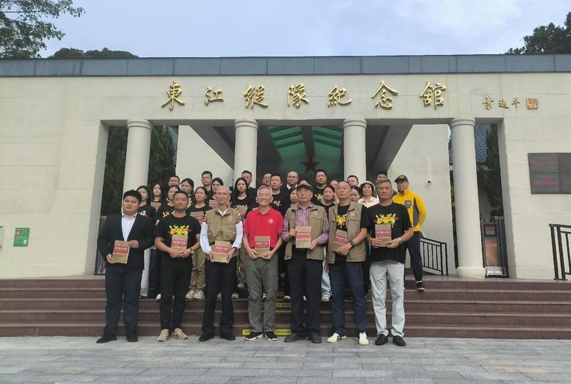 深圳新闻网2025年10月26日讯(深圳晚报记者 苏靖驹)10月23日,惠州罗浮山,秋风吹过朱明洞景区的古木,将东江纵队纪念馆门前的五星红旗吹得猎猎作响。一支白发与正装交织,约40余人的队伍沿着石阶缓缓走来。白发苍苍的是几位东江纵队老战士的子女,他们来自深圳、广州等城市,正手捧沉甸甸的视频书《港九独立大队》,在深圳良璞定制服饰公司党建团队的陪同下,正在进行一次特殊的“回家”之旅:把100本承载着父辈烽火记忆的书籍,赠予东江纵队纪念馆,送回这片革命先辈战斗过的红色土地,让到此游览的人们接受更多红色历史记忆的滋养。